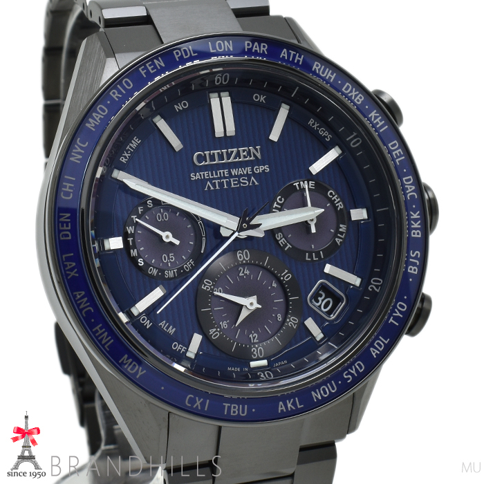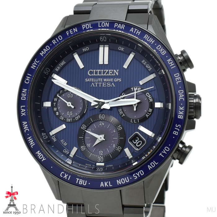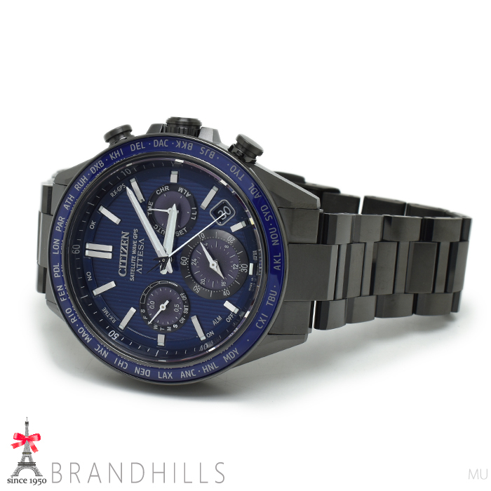 商品名シチズン アテッサ ACT Line エコドライブ GPS衛星電波 クロノグラフ ブラックチタン ネイビー文字盤