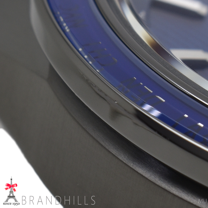 ケースのブラックと青紫のサファイアベゼルおよび文字板が宇宙を思わせる力強く軽快なデザインの腕時計です。
