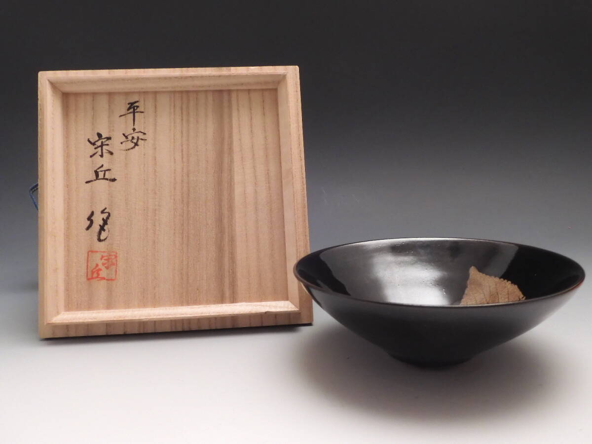 | ◇桔◇平安 宋丘 久保義蔵 造 木葉 天目 茶碗 茶道具 共布 共箱 無傷 未使用 E7◇ |