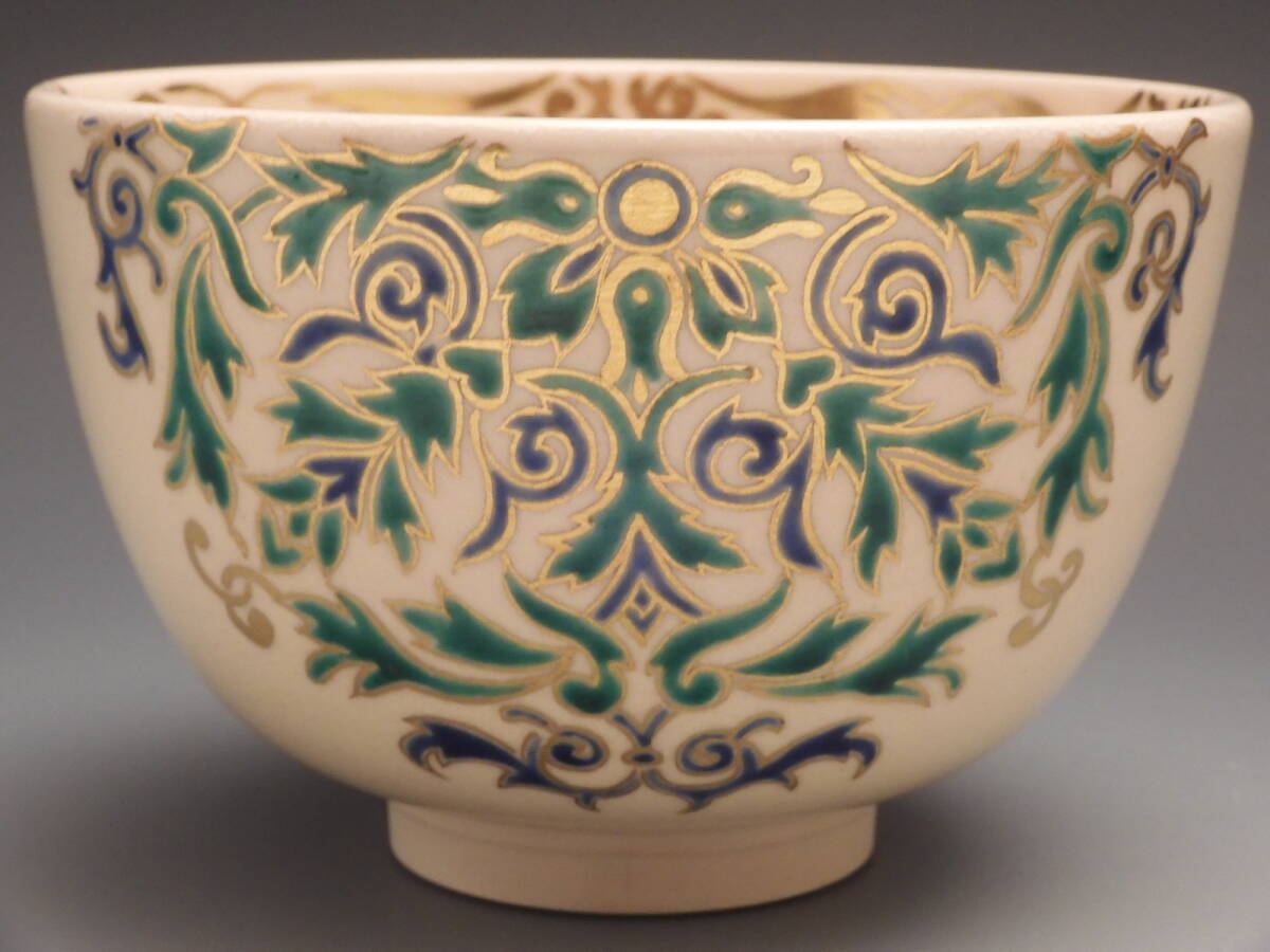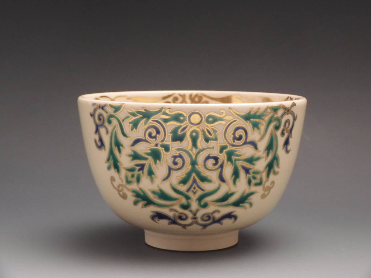 | ◇桔◇今岡 妙見 造 妙見窯 色絵 正倉院文様 唐華 茶碗 茶道具 共箱 無傷 未使用 E18◇ |