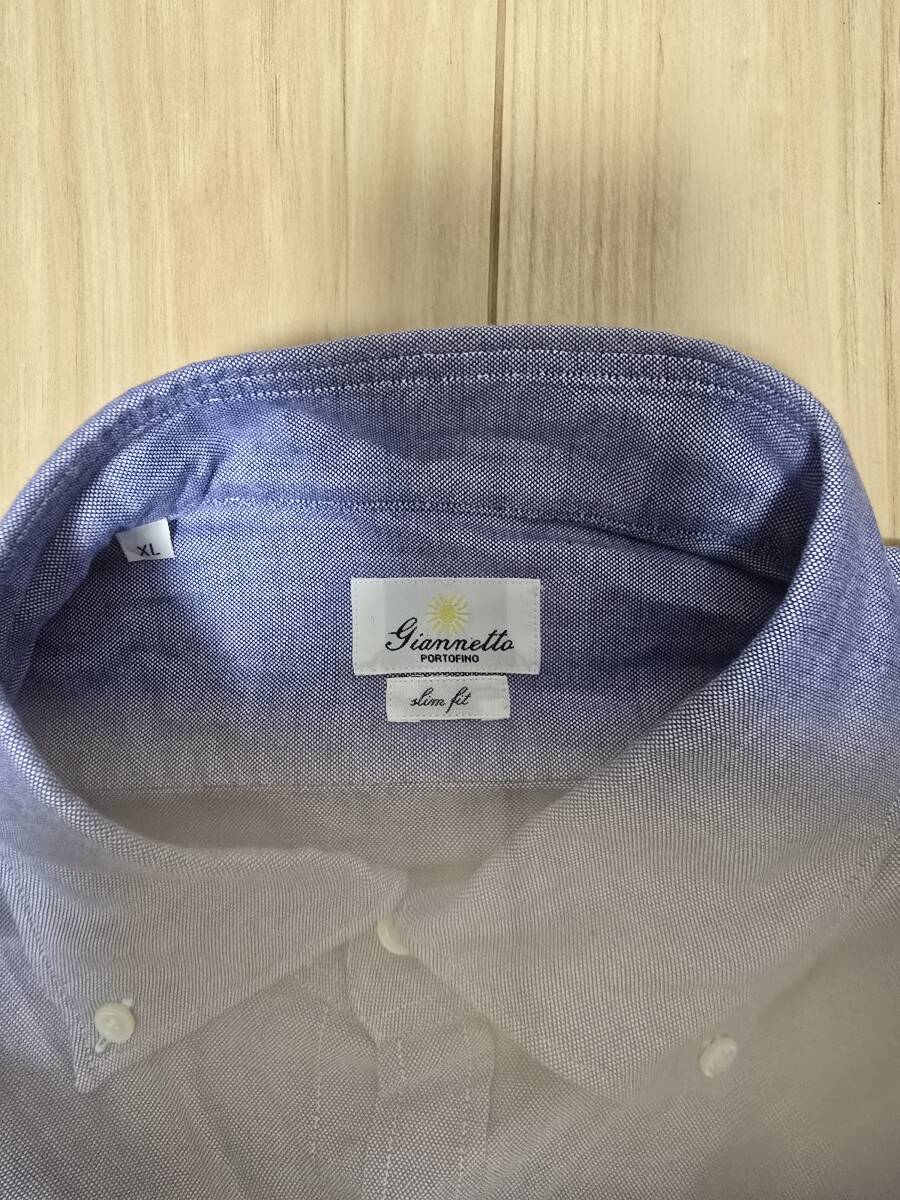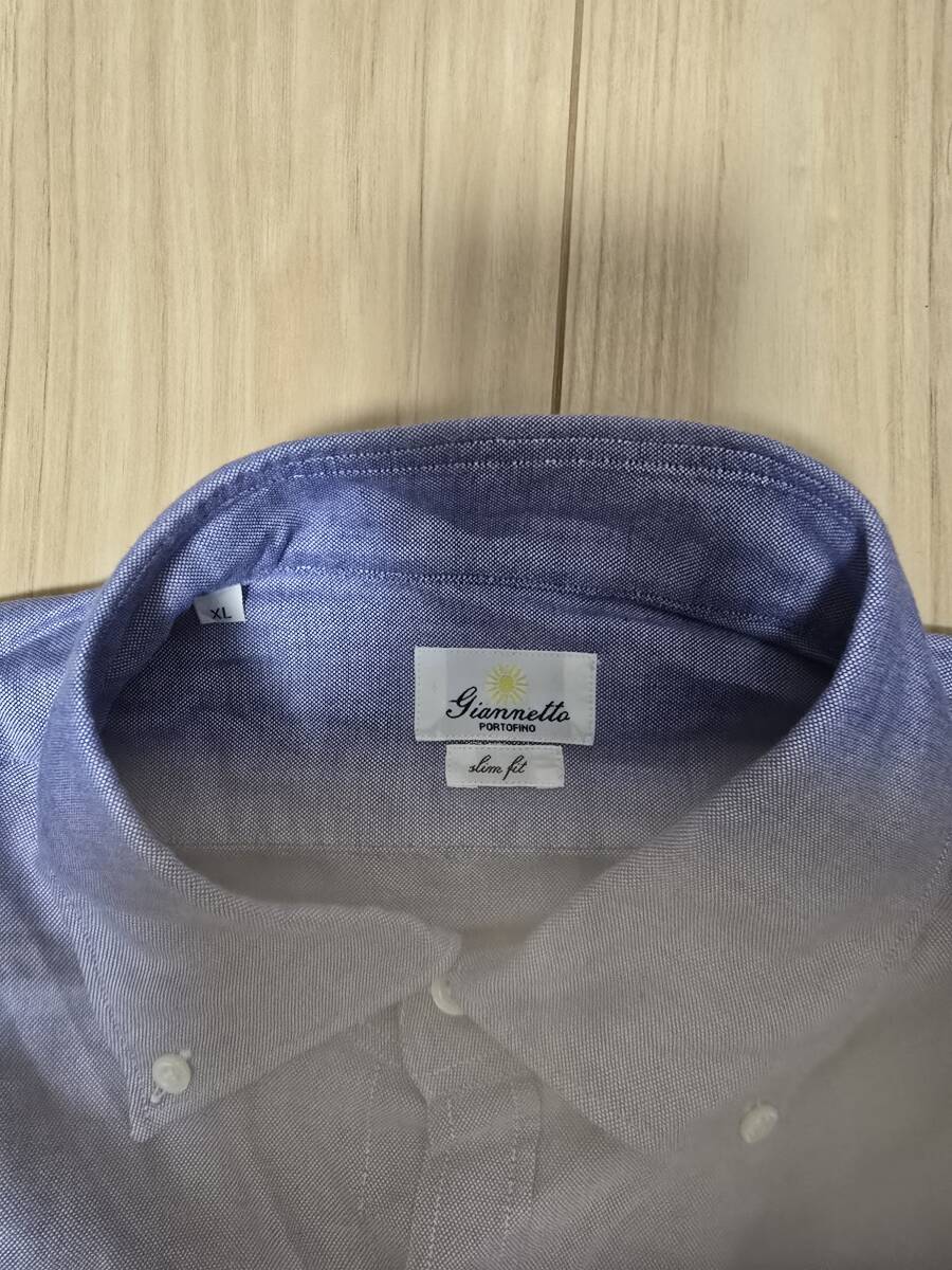 GIANNETTOのブルーシャツ、サイズはXLです。ボタンダウンで、スリムフィット仕様です。
