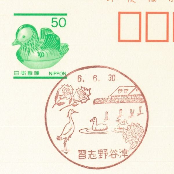 風景印☆初日☆千葉・習志野谷津・H6.6.30・旧印