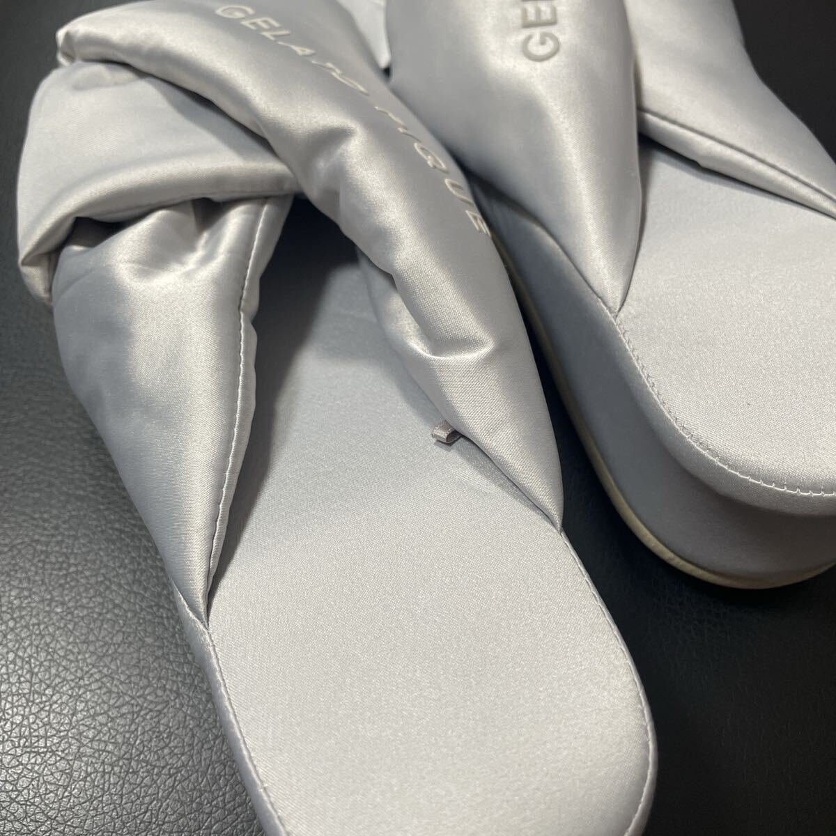 ふわふわの綿入りで甲当たりも優しい、ヒールルームシューズ。お部屋のコーディネートにモードな印象をプラスしてくれます。