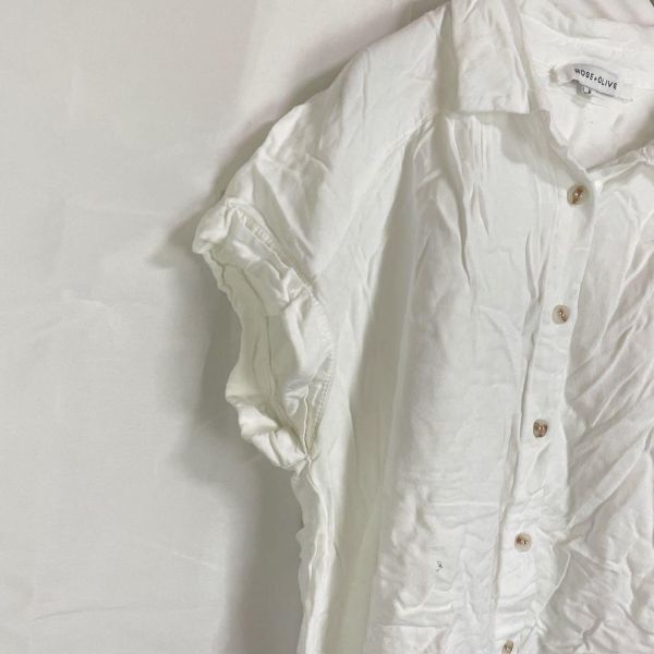 軽やかな着心地◎ ROSE + OLIVEの涼しげな白シャツ - ブランド:ROSE + OLIVE - サイズ表記:M - 素材:ポリエステル・レーヨン - カラー:白 - シーズン:春夏 - 服の特徴:フレンチスリーブ風の半袖、前ボタン仕様、軽やかな素材感 - ダメージ・汚れ詳細:全体的にしわあり、汚れあり - 袖の長さ:半袖 管理番号: 04-37 即購入大歓迎・お得な割引各種あります 詳しくはプロフィールをご覧ください! 匿名&送料無料 海外輸入のため全て一点ものです 古着のため使用感・毛玉等があることもあります。写真で状態の確認を行なってからご購入ください おまとめ買いでお得な割引あります♪ 平置き採寸表→写真から確認いただけます! (素人採寸のため、多少の誤差はご了承ください) 商品状態に関しては、写真、商品説明欄に記載しております。着用回数、購入時期などはお答えできませんので、ご了承ください。着画、写真の追加もお断りしております。 簡易包装のコンパクト発送となります。 畳みシワはご了承の程、宜しくお願いいたします。 商品によっては圧縮してお送りするものもございます。 撮影環境や使用するモニター、反映されにくい色味など、 商品と画像に若干の色誤差が生じますことをご了承ください。 出品作業の際にしっかりと確認はしておりますが、シミなどの見落としがある場合もございますのでご了承下さい。 古着の取り扱いになりますので特有の匂い等がある可能性があります。ご理解のある方のみご購入の程お願い致します。