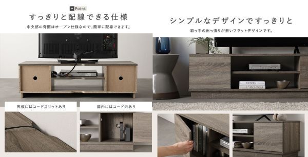 オープン収納と扉収納があり、片づけたい物に合わせて収納場所を使い分けられる便利なテレビ台です。