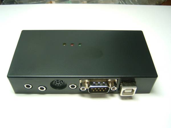 右側から、USB接続用、リグコントロール、キー出力、リグ接続用(ミニDIN6P)、パソコンのスピーカ端子、パソコンのマイク端子との接続用です。