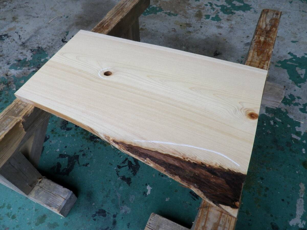 長78*幅39-52*厚2.8 桧57の木材木工材,一枚板自然木無垢材DIY テーブル天板 ヒノキ