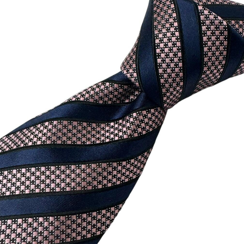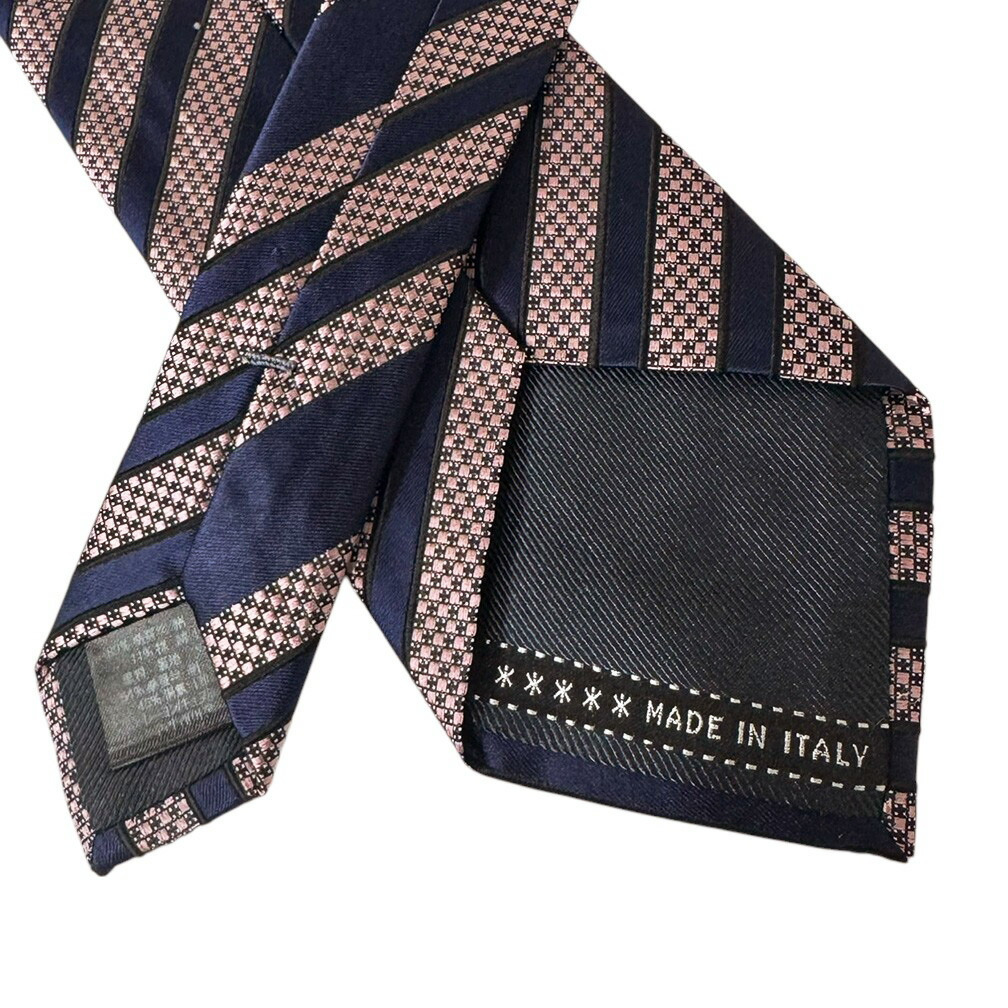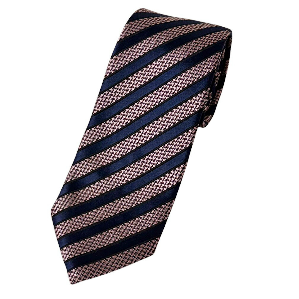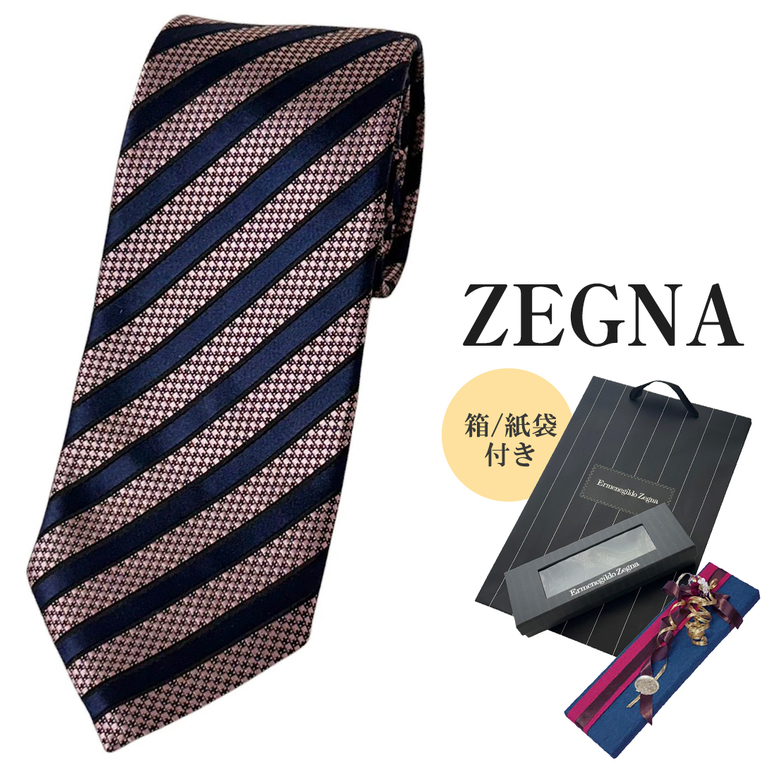 未使用 ゼニア ブランド ネクタイ エルメネジルド・ゼニア 高級 シルク 100% ストライプ ピンク ネイビー アウトレット