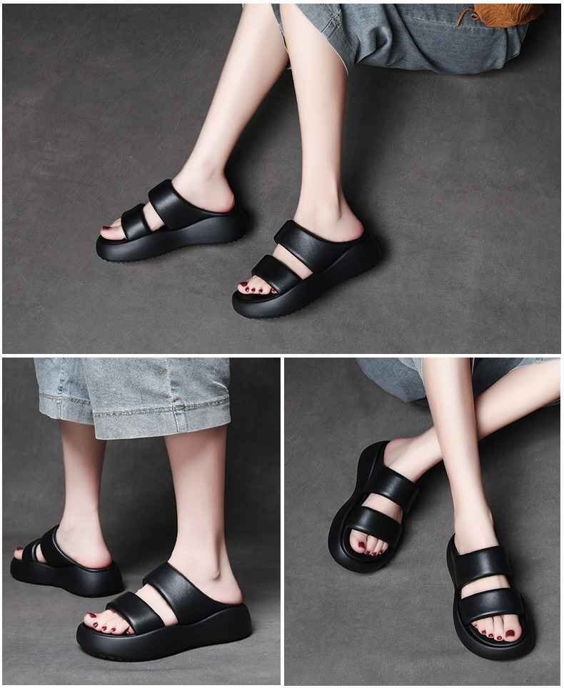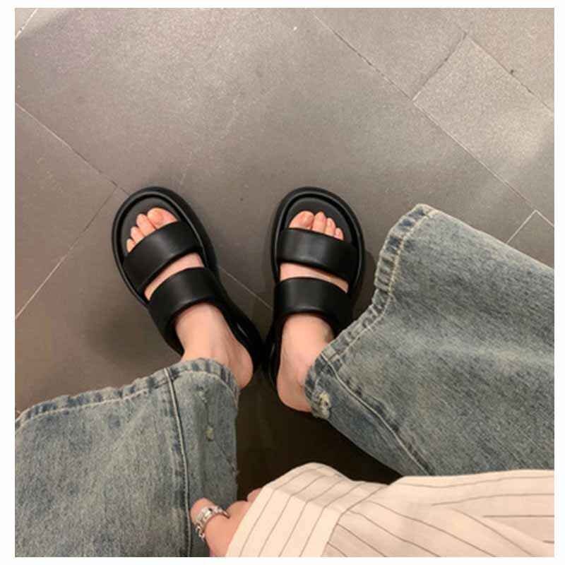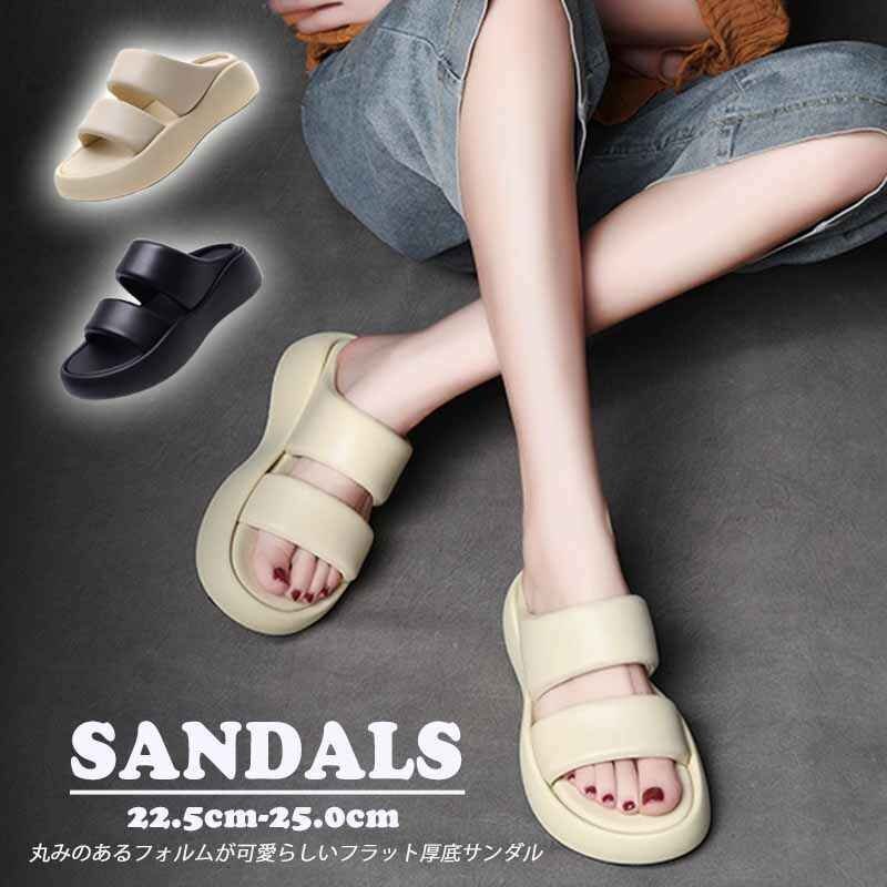 ・丸みのあるフォルムが可愛らしいフラット厚底サンダル。