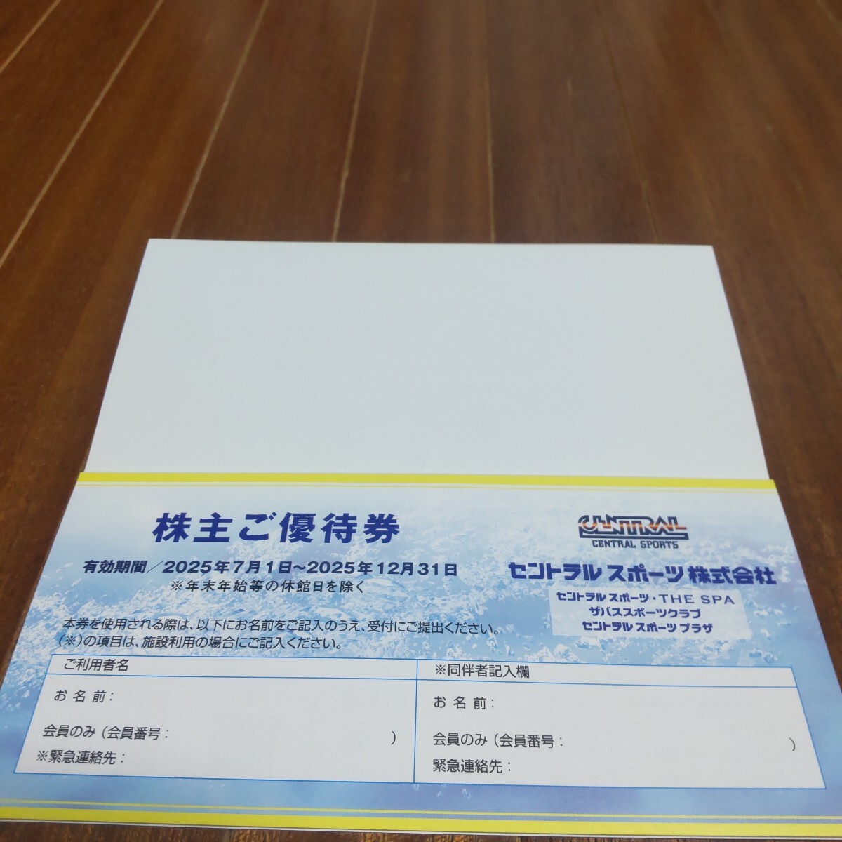 セントラルスポーツ株主優待券6枚綴り(1冊)です。