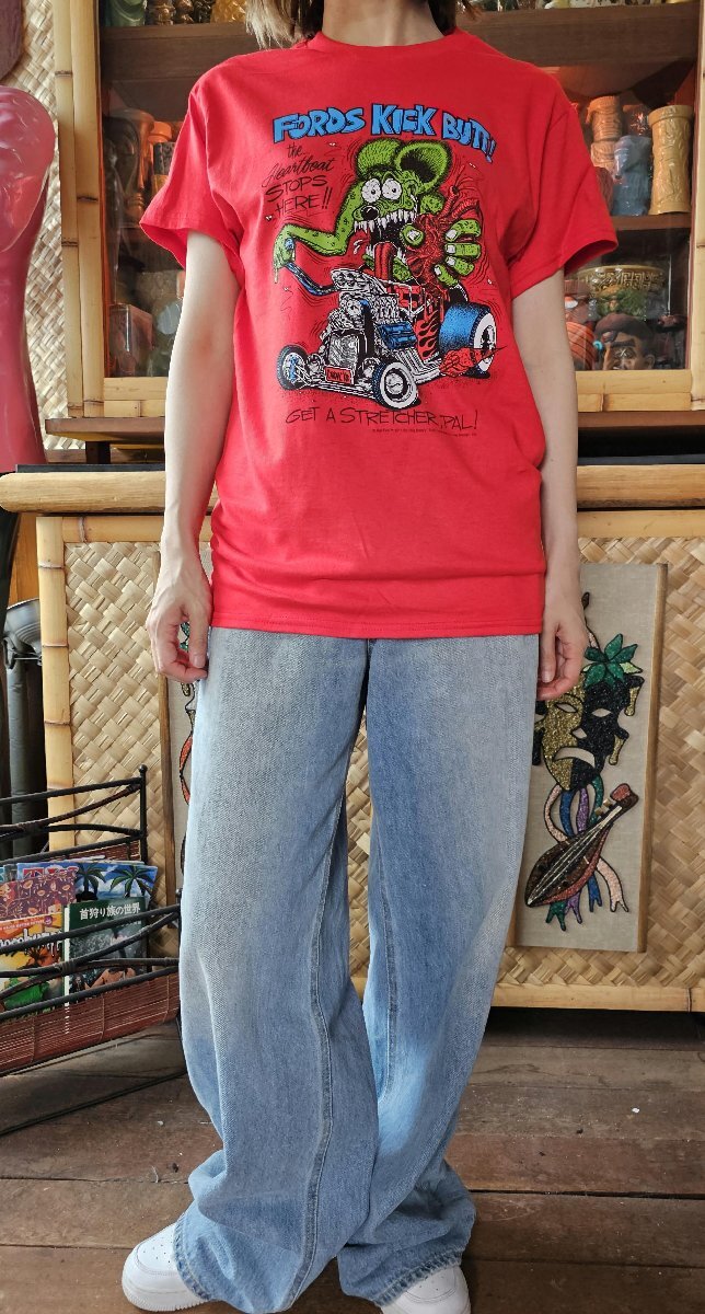 | RATFINKラットフィンクTe赤L,FordKicks!US版 エド・ロス氏のキャラでお馴染み、ラットフィンクのTeです。 ラット×アメ車・HOTRODデザインの中でも,特に人気の高いFORD BUILT BUTT! 珍しい赤ボディー!心臓わしづかみでクルージンするラット! 日本未発売,USから発売のラインで、 60sから繋がるラットフィンクのハードなイメージに忠実です。 バックにはEd Rothロゴ,なかなか入手しにくいです。 新品・正規品 XLサイズ 大きめに着たい方、体格のよい方に・・・肩幅56cm, 身幅61cm, 着丈78cm モデル 161cm , Sサイズ着用 郵メール便送料¥250(代引き不可・紛失補償なし) ACE CAFE LONDON、LUCKY13、THRASHER、Sailor Jerry等~アメキャラ・企業ロゴ等ライセンスTシャツ、RATFINK関連品、バンドTシャツ等取り扱っております。 ** 他にも色々出品中です。 CWKTW IWTS | |||||||