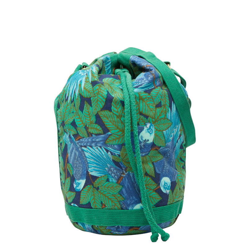エルメス ボタニカル 鳥 斜め掛け ショルダーバッグ グリーン ブルー コットン レディース HERMES 【中古】