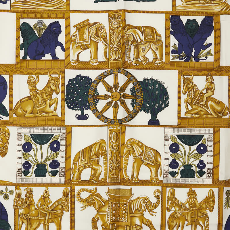 エルメス カレ90 TORANA 塔門 スカーフ ホワイト ゴールド マルチカラー シルク レディース HERMES 【中古】