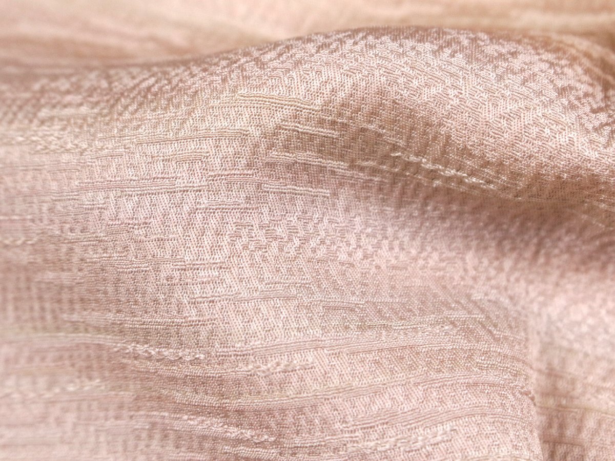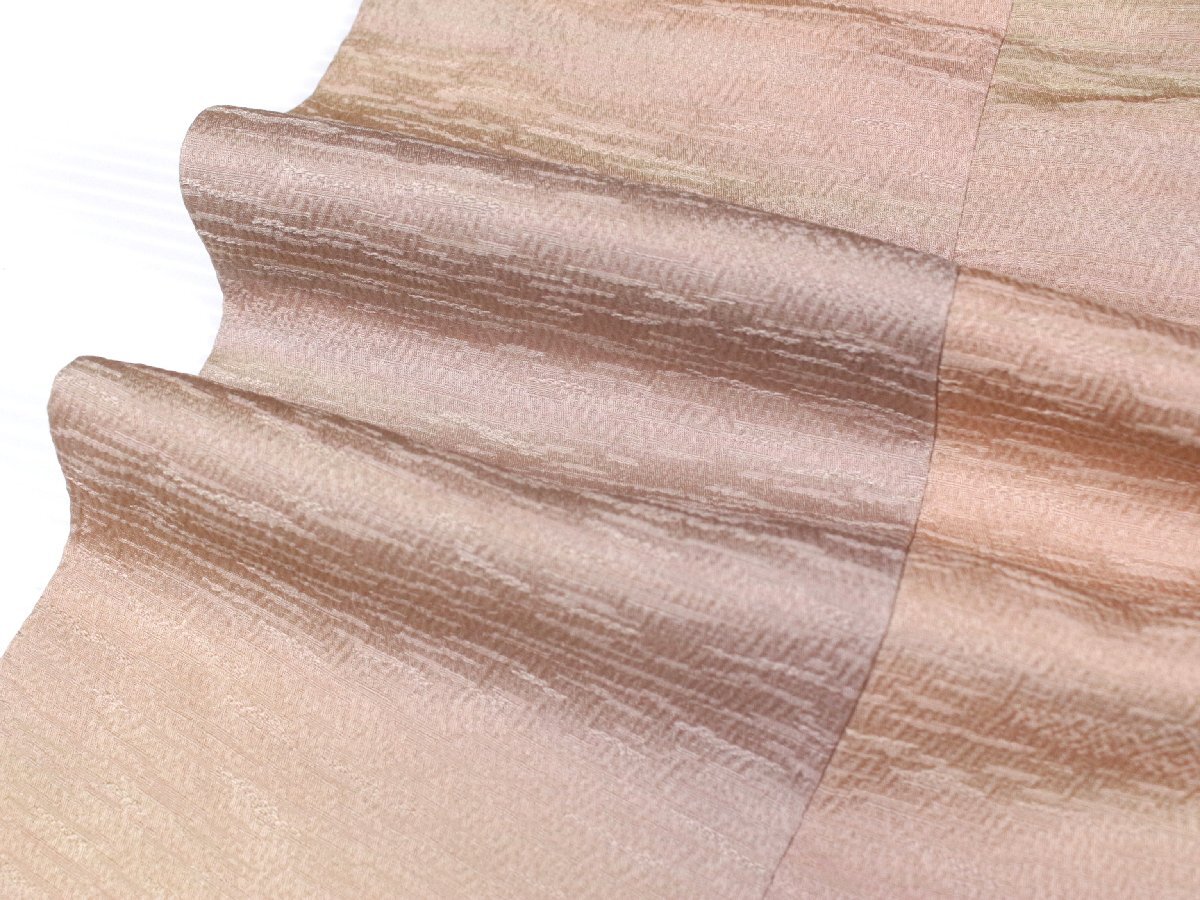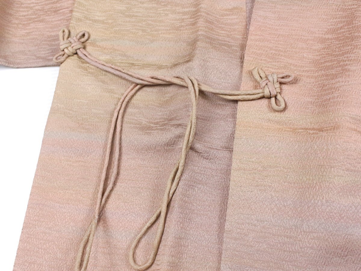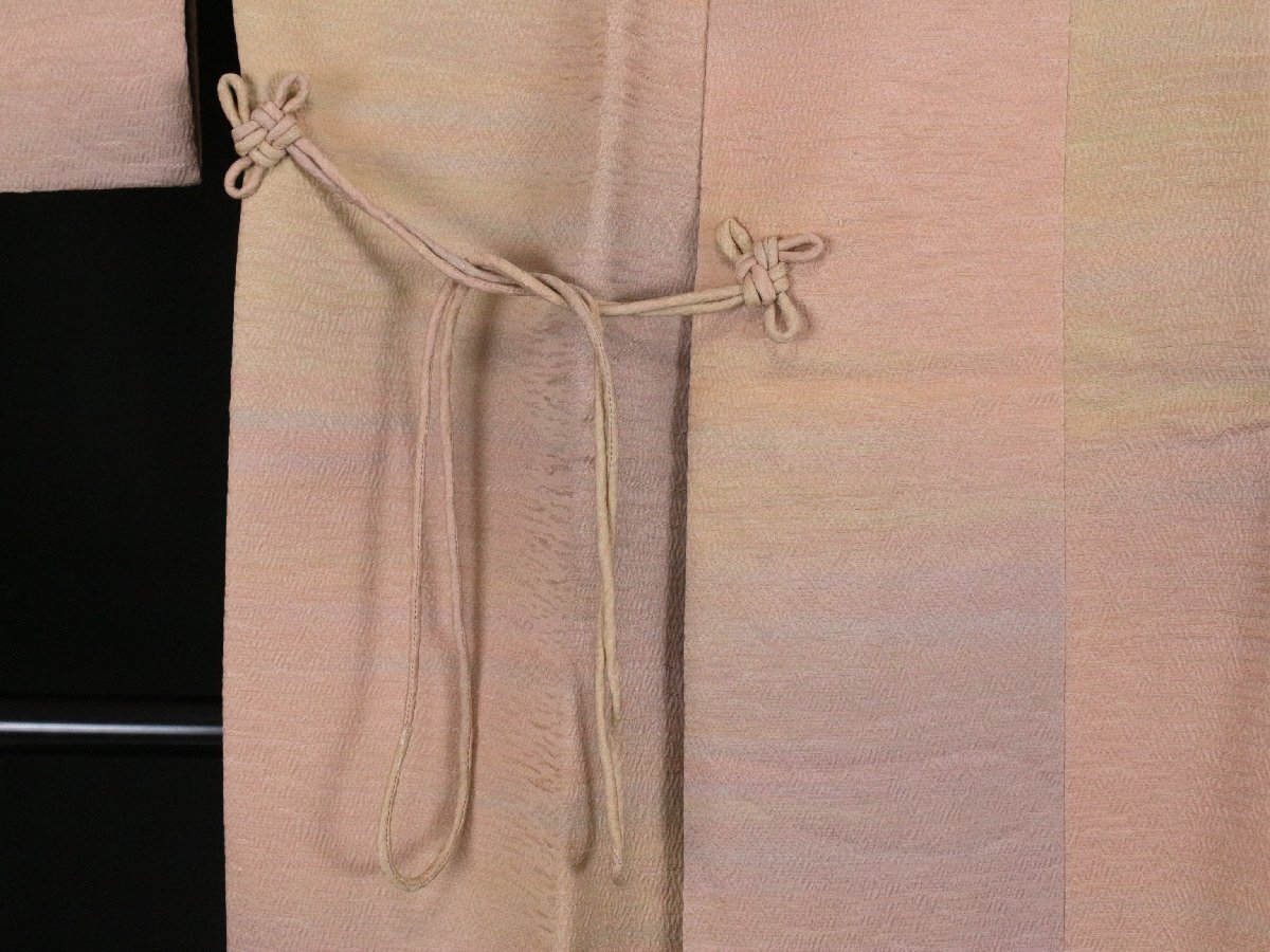 しっとりとした風合いが魅力の正絹道中着のご紹介です。 繊細な地紋が織り出された正絹地に、やわらかな色の濃淡が自然に溶け合う上品な仕上がり。表情豊かな織りの陰影が、穏やかでありながら奥行きのある美しさを演出しています。 羽裏には深みのある色合いが用いられ、羽織を脱いだ際にも上質さが際立つ仕立て。 控えめな色合いと落ち着いた意匠は、装いにさりげない格を添えます。 上品な艶めきをまとった、大人の女性に似合う洗練の一枚です。 【道中着】 着物と同じ衿合わせのコートです。前は備え付けの紐を結んで留めます。 道中着の名前は「道中お気を付けて」という言葉に由来しており、旅路に着るのが一般的だったため、室内では脱ぐのがマナーとされています。 道中着はカジュアルなコートですので、街着やおしゃれ着などのカジュアルなお着物に合わせるのがおすすめでございます。 お目に留まりましたら是非ご検討下さいませ。 ※撮影時の部屋の照明によって画像の色に若干の差がございます。色味に差がございますことをご了承のうえご検討下さいませ。 …状態… 状態良好 ※全くの新品ではございませんので、記載のない変色やスレ、ヤケ、その他僅かな難がある場合がございます。そのような理由でのキャンセルはお受けできませんので、ご了承の上ご検討お願いいたします。 |