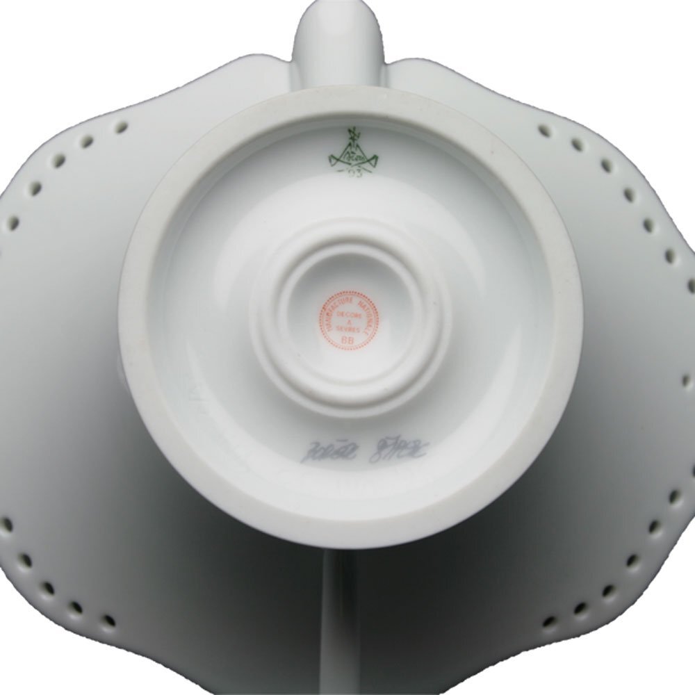 | 【PAA(白磁アントワーヌダルビ)1965年にセーブル工房で改良認可された素材】 作品にはセーブル工房のロゴと制作年度、デザインを手がけたBorek SIPEK(ボレック シーペック)のサインが記されています。セーブル作品はハンドメイドで制作されているため為一点一点装飾の細部など微妙に異なります。 デザイナーであり建築家でもあるBorek Sipek(ボレック シーペック)によるService Semaine(サービス スメーヌ)はデザートプレート「lundi」,デミタスコーヒーカップ&ソーサー「mardi」,クリームジャグ「jeudi」,シュガーポット「vendredi」,ポット「samedi」で構成されています。 ☆Porcelaine blanche(ou P.A.A)☆ 白磁アントワーヌダルビ(白磁P.A.A):1965年にセーブル工房のアントワーヌ ダルビによって考案された白磁、1380℃で焼かれる。この素材はPN(ヌーベルペースト)とPD(ハードペースト)の中間素材として調整、改良されたので多様な使用が可能。 | |||