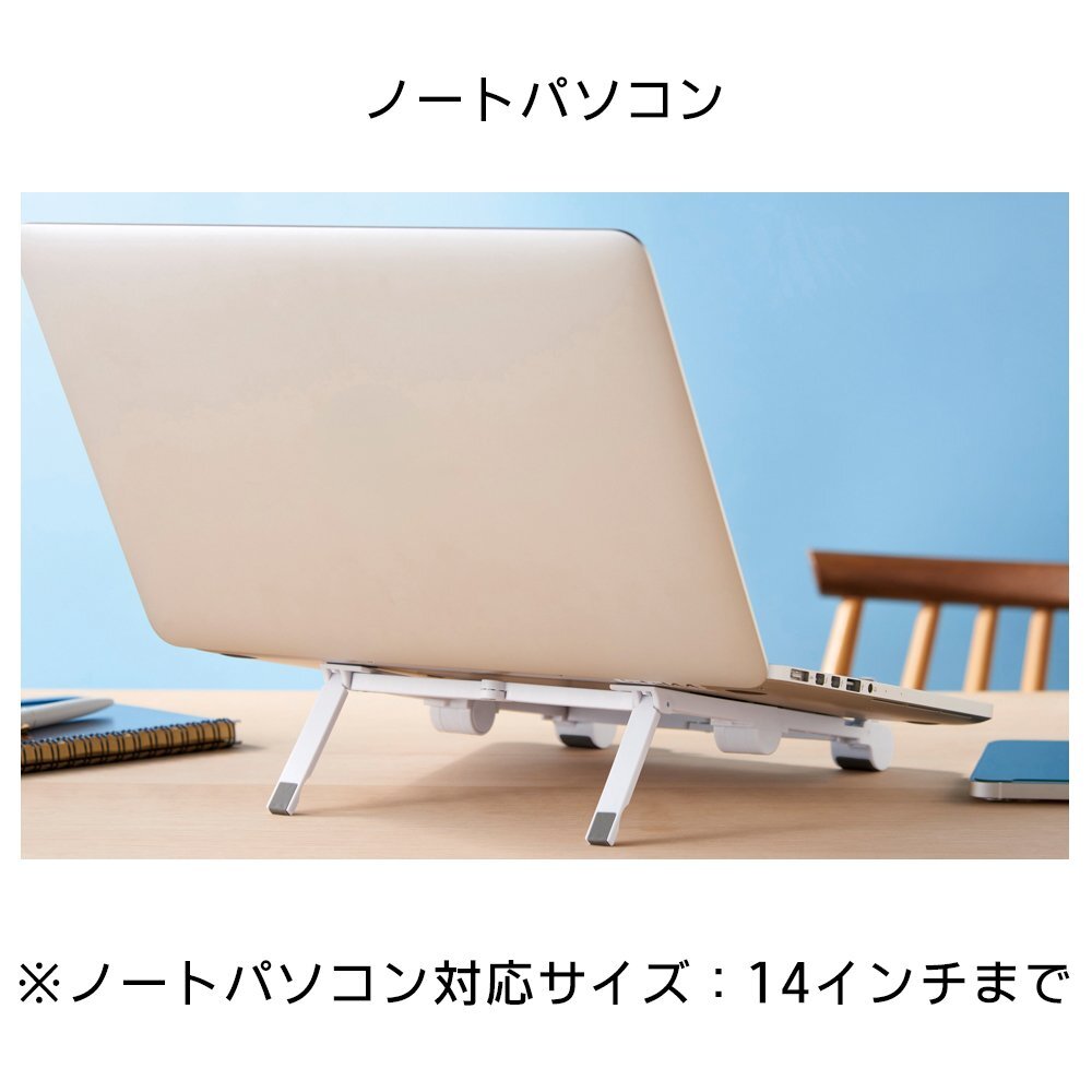 | 本体サイズ | ・本体収納時:約W4.5×D12.9×H2.3cm 【使用時】 ・スマートフォン:約W4.5×D7.8×H11cm ・タブレット:約W17×D10×H11cm ・ノートパソコン:約W17×D25×H6.5cm |