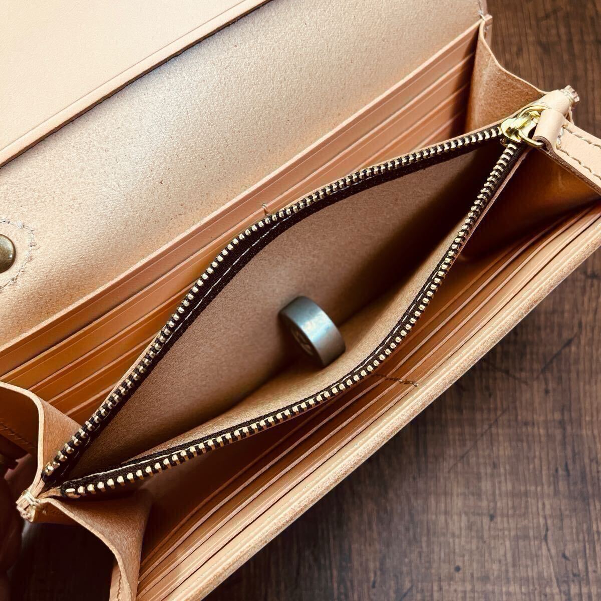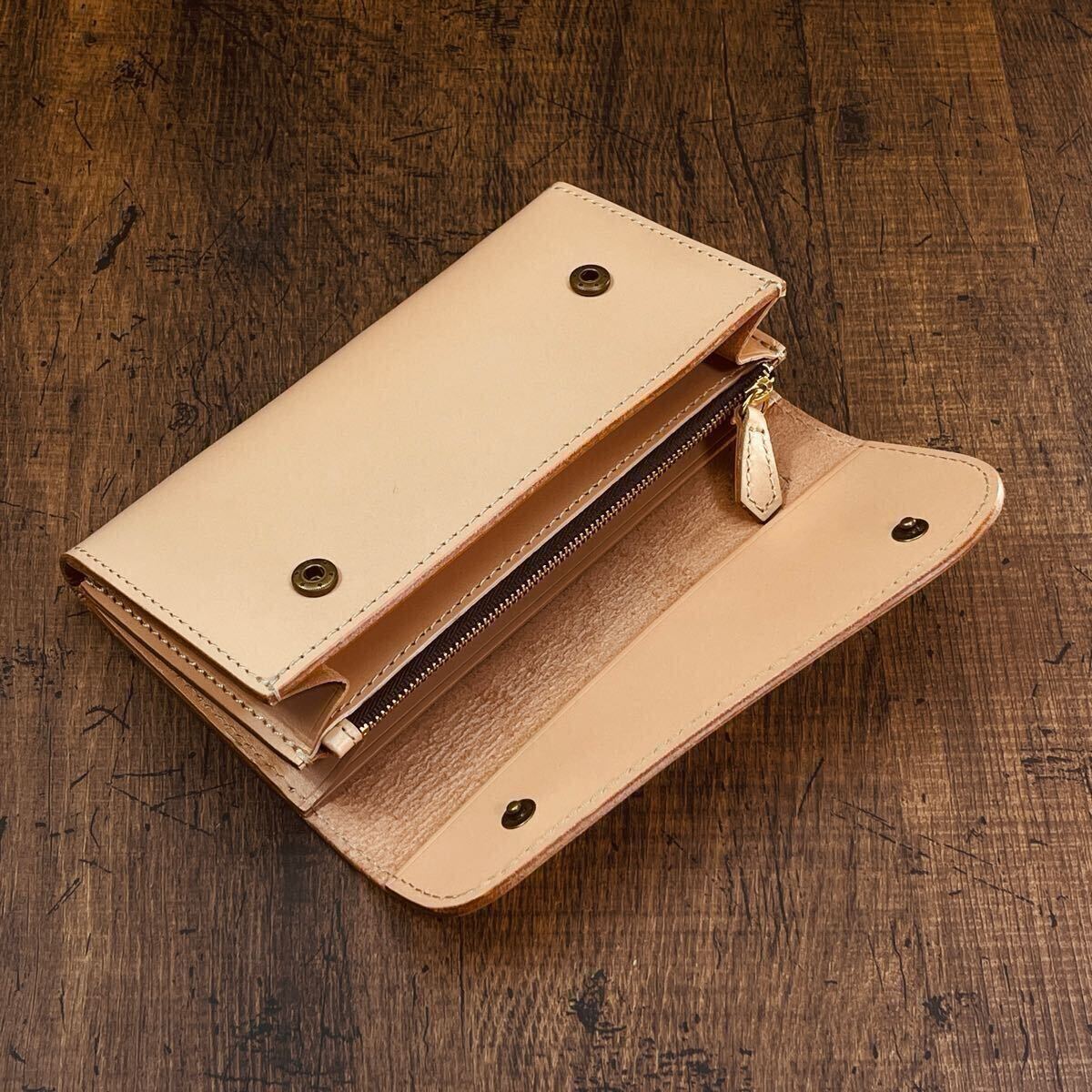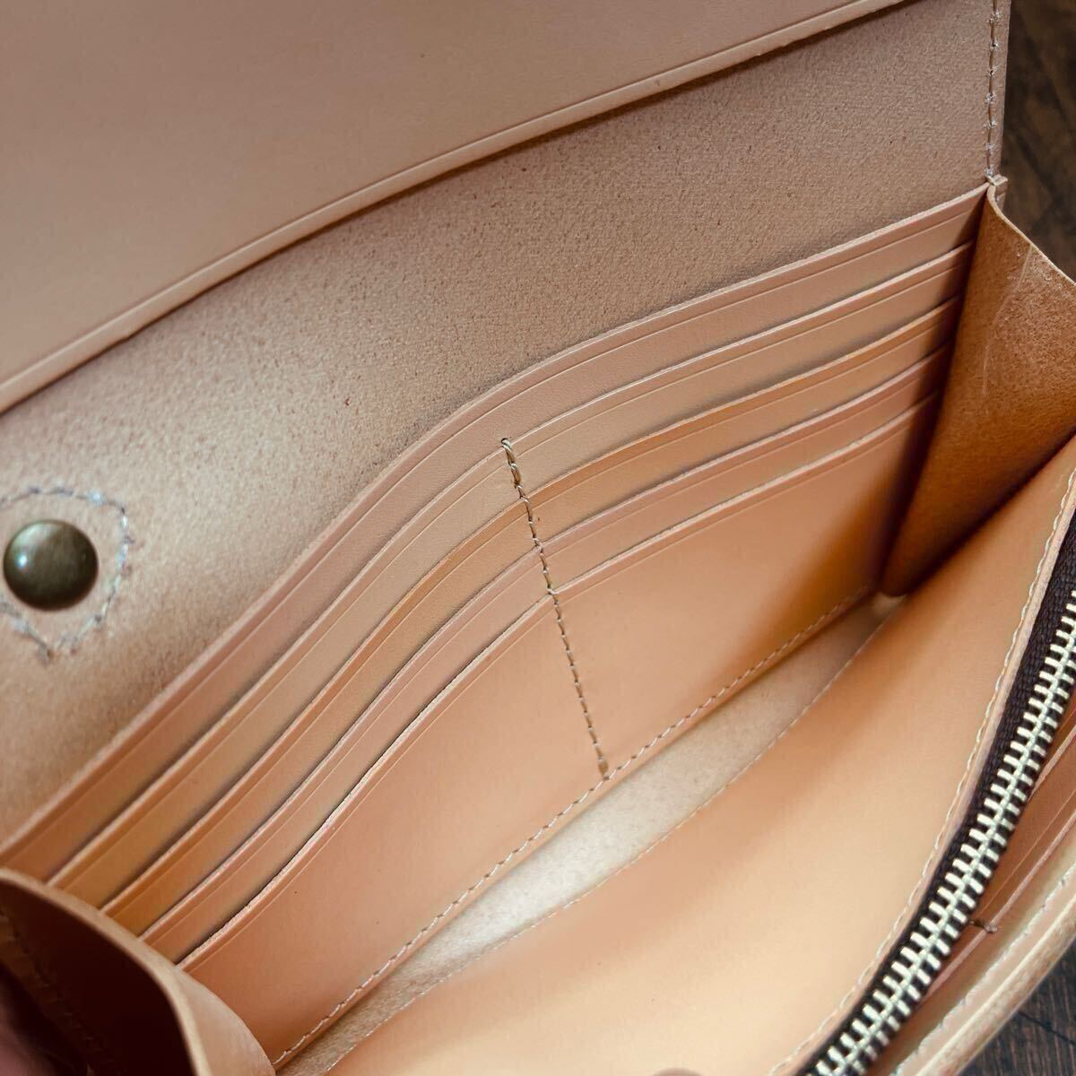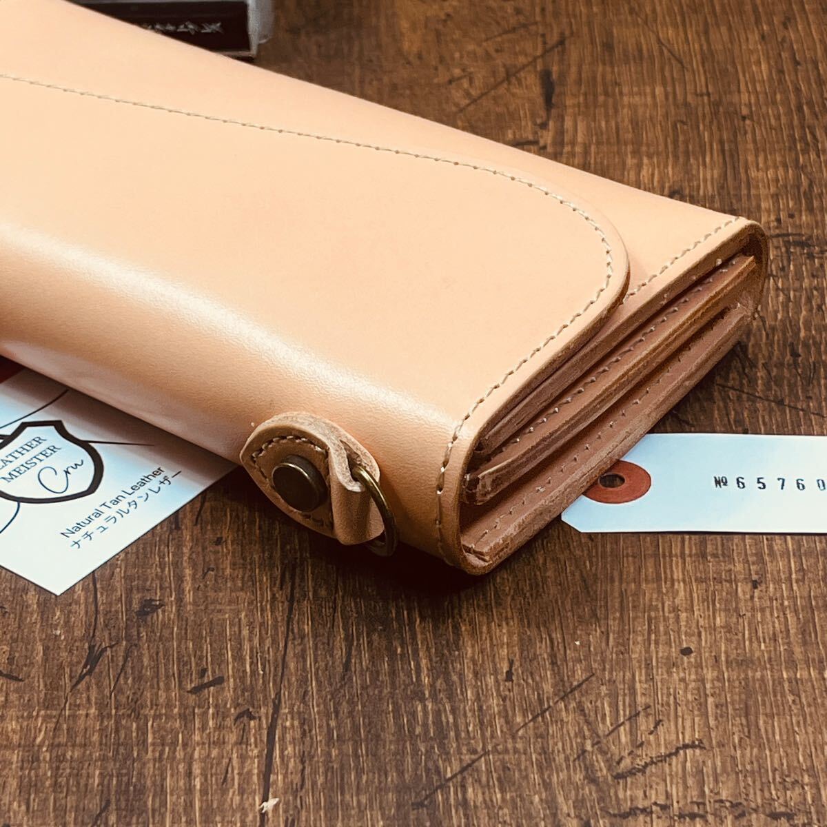 「サドルレザー」シリーズで使用しているヌメ革は、塗料の加工を一切しておりません。その他の表面加工も、ほとんど施していないのが特徴で、新品の状態は「白ヌメ」と呼ばれる、淡いベージュ色です。一般的なヌメ革は、ヌメ革と謳っていても、実際はベージュ色の塗料などで加工しているものも多いのです。