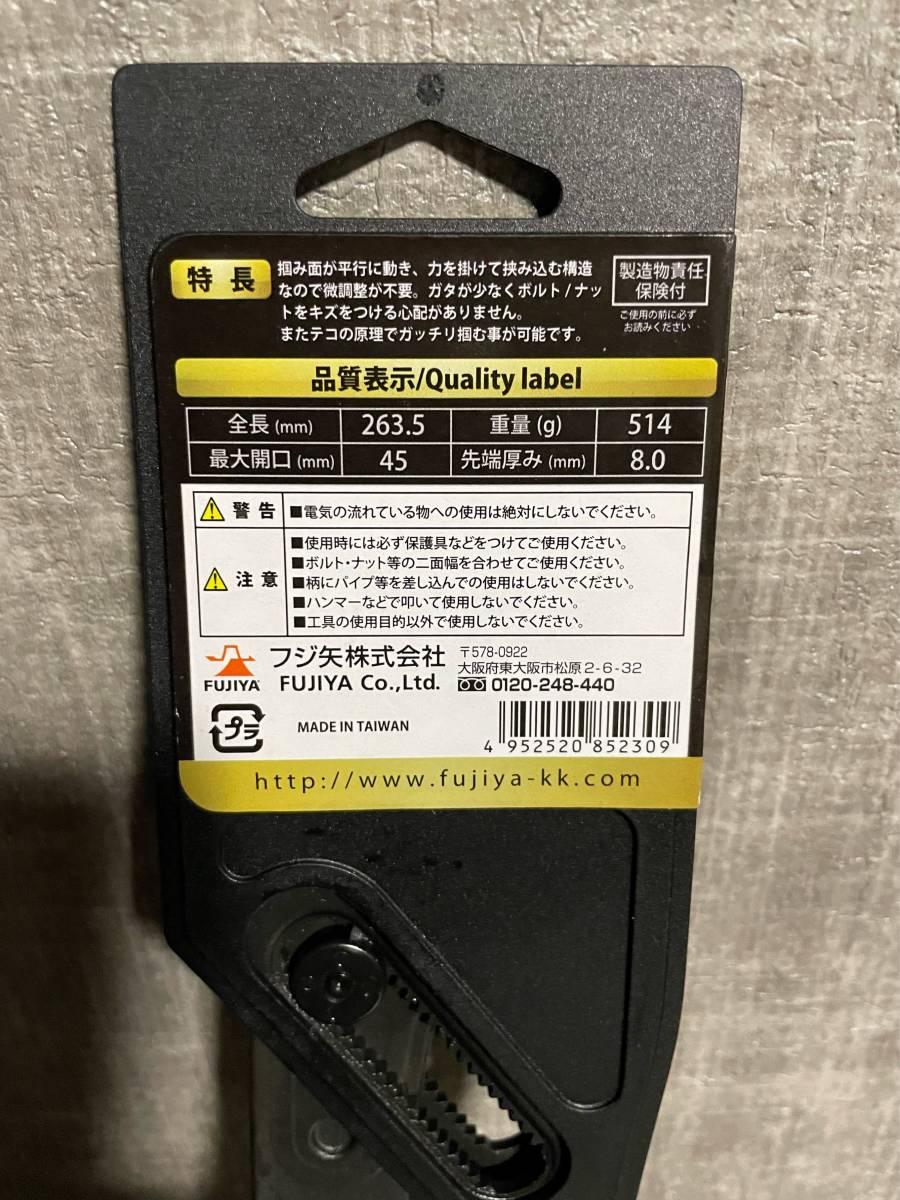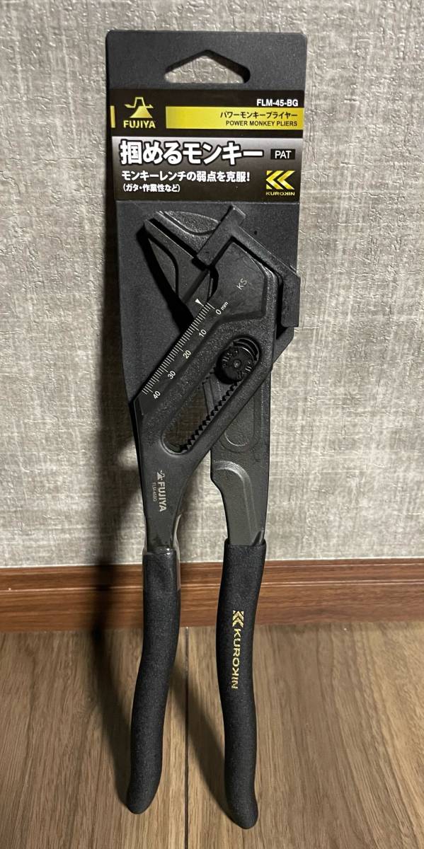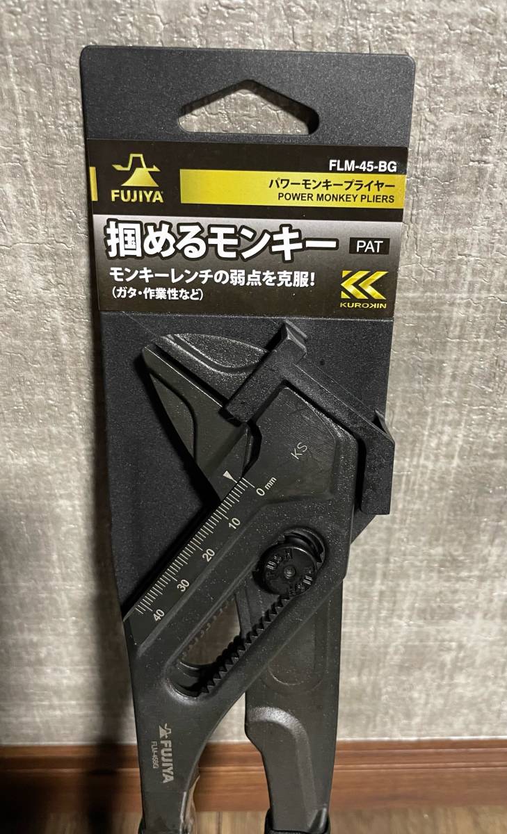 フジ矢・KUROKIN/FLM-45-BG /掴めるモンキー/パワーモンキープライヤー(黒金) <用途> 配管工事、自動車整備などボルト、ナット、パイプを掴んで回す様々な作業に。 <特長> ・今までのモンキーレンチの弱点を克服!掴めるモンキー! ・グリップを握った時に掴み面が平行に動いて挟み込む構造なので、掴む際の微調整が不要です。 またモンキーレンチのように開き幅を変える事なく連続してナット回しが可能です。 ・プッシュボタンにより開き幅を素早く調節可能です。 ・掴み面がフラットな為、対象物をキズつけません。 ・テコの原理により超強力に掴む事が可能です。 ◆詳細はメーカーホームページをご参照ください。 ◆ノークレーム、ノーリターンでお願い致します。 ◆神経質な方の入札はご遠慮下さい ※パッケージに小傷や割れがあります ◆落札後24時間以内のお取引開始、2日以内にご入金出来る方のみの入札をお願いします。