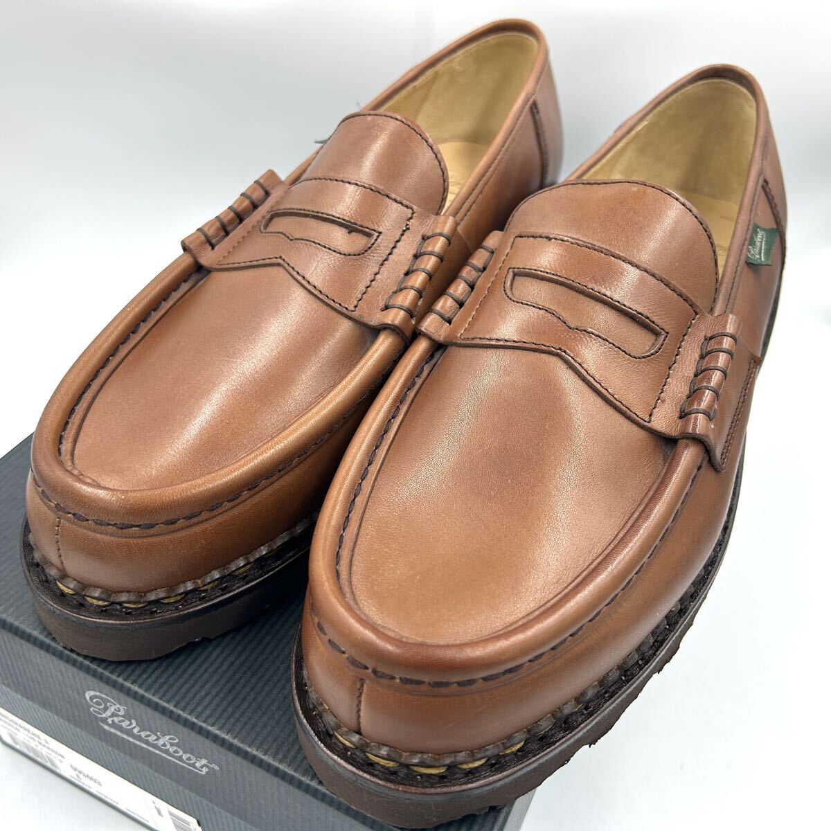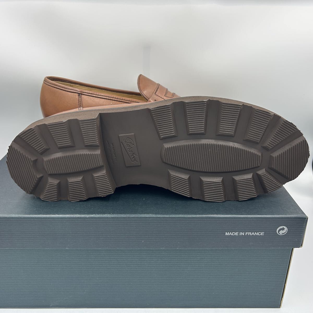 パラブーツの定番、ボリュームのあるデザインのローファーREIMSランスです。色は最近販売されていない珍しいマロンです。2013年製造のもので、インソールは旧デザイン字体です。