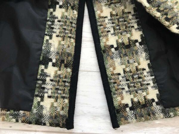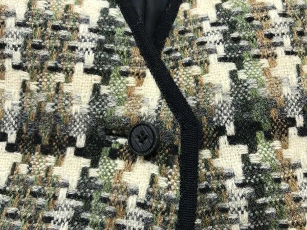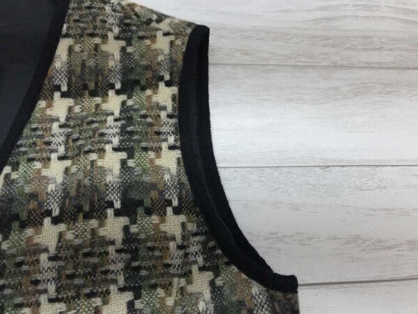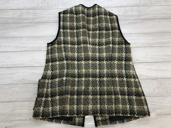オールド レトロ モード 古着 総柄 ツイード パイピング ニット ベスト 総裏地 カーキ系 レディース です。