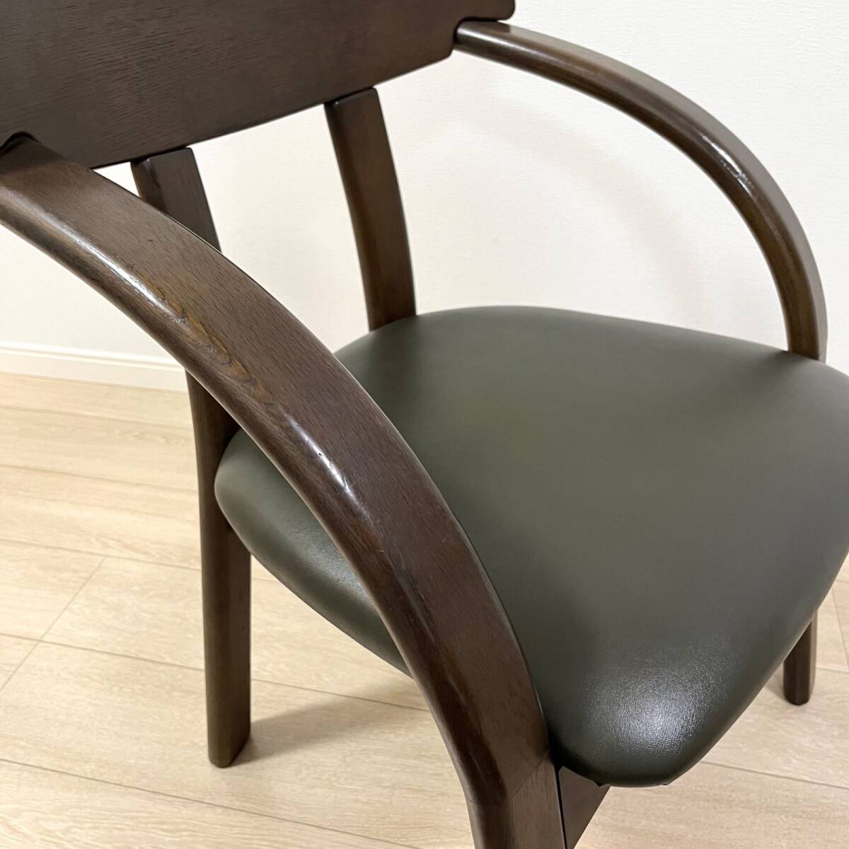 深いブラウンの木部とオリーブ系の座面カラーは、レトロカフェ・純喫茶インテリアとも相性抜群です。
