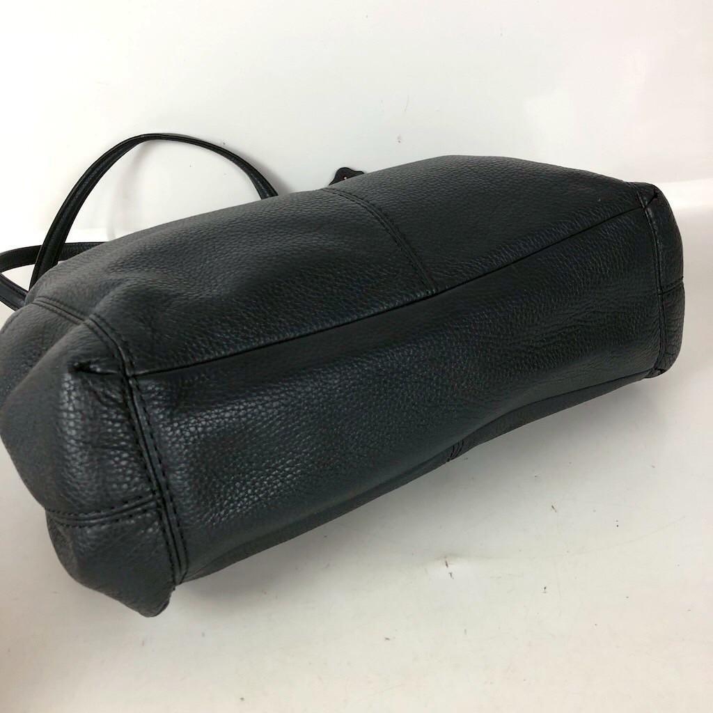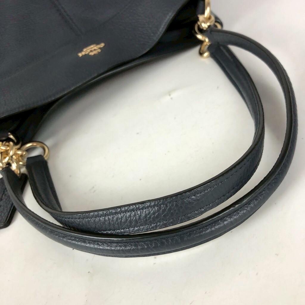 多少の使用感はありますが、レザーの質感がしっかり残っており、まだまだ長く愛用いただける状態です。外側には細かな汚れはあるものの目立つダメージはなく、全体的に良好です。内側はシミや破れがなく比較的綺麗で、取っ手やショルダーストラップも強度があり破れや劣化は見られません(長さ22cm)。落ち着いたネイビーカラーとシンプルなデザインが魅力で、普段使いはもちろんビジネスやカジュアルコーデにも合わせやすい万能バッグです。