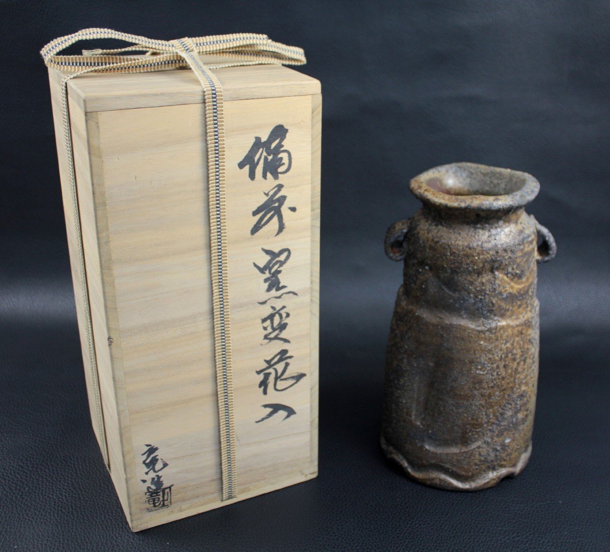 | ▼商品名 | 川口 龍士 陶器 窯変花入 川口陶楽苑 備前焼 陶磁器 花器 花入 共箱あり 共箱 骨董品 箱付 レトロ アンティーク コレクター |