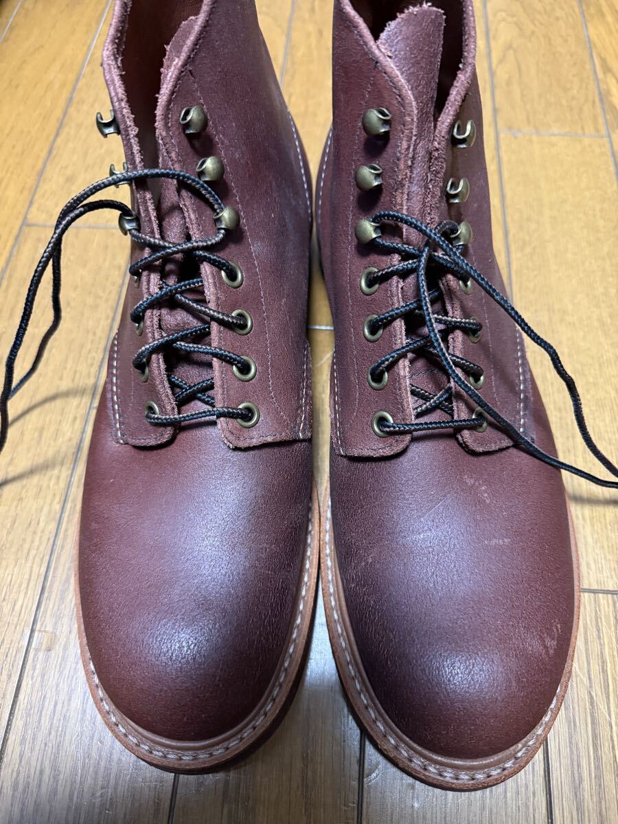 また、ハンドメイドでアメリカ製の商品でございます。上記のような一点一点異なる革の表情も本革の魅力としてブーツライフをお楽しみ下さい。