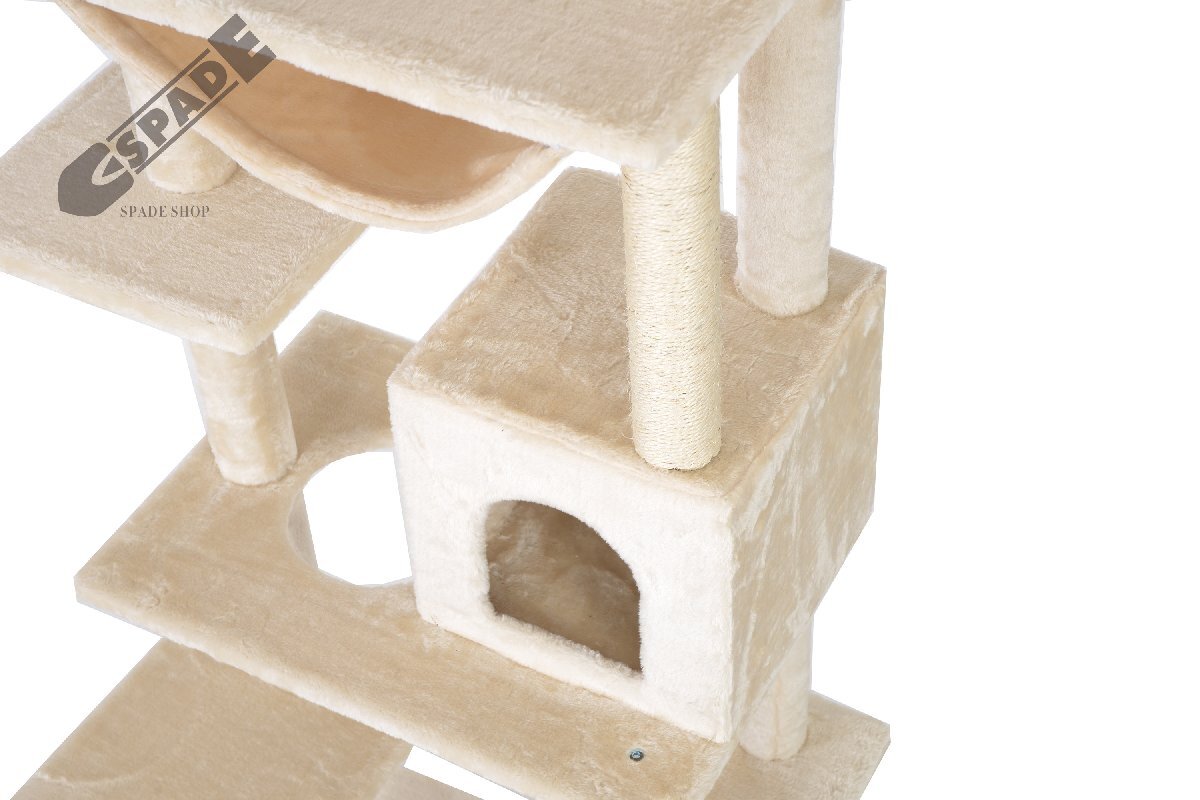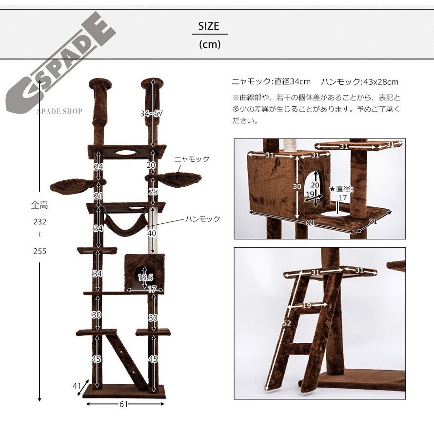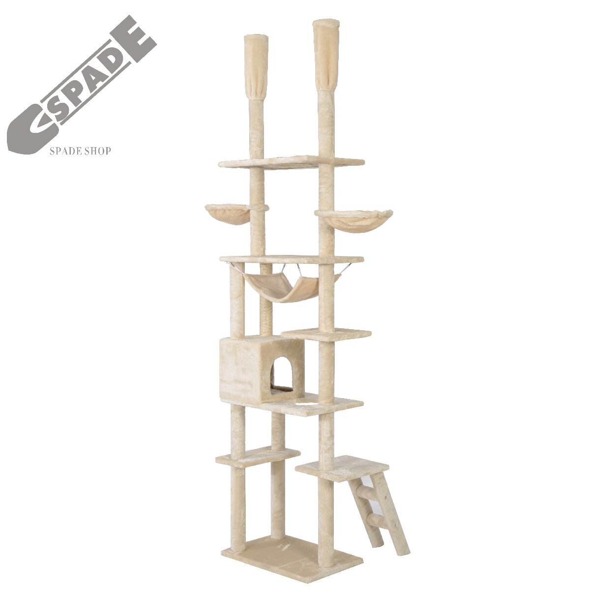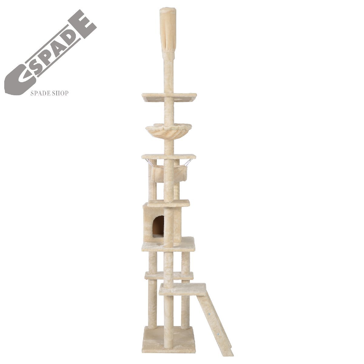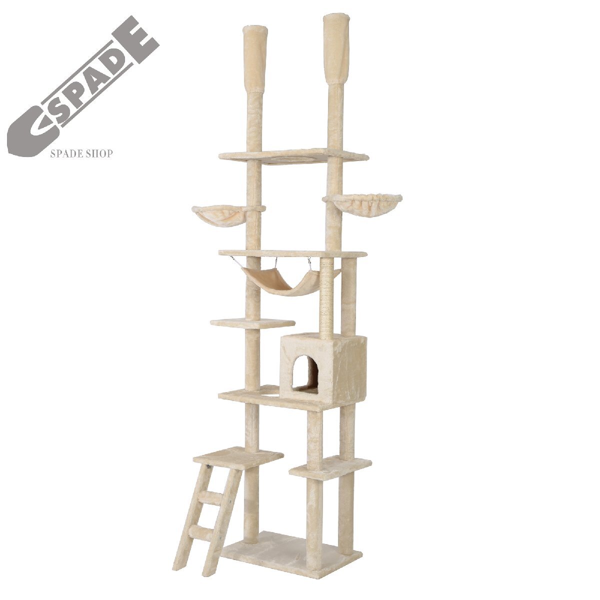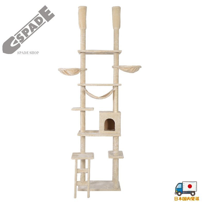 【国内発送】キャットタワー 突っ張り 全高235-258cm ハンモク ベージュ【ベージュ】
