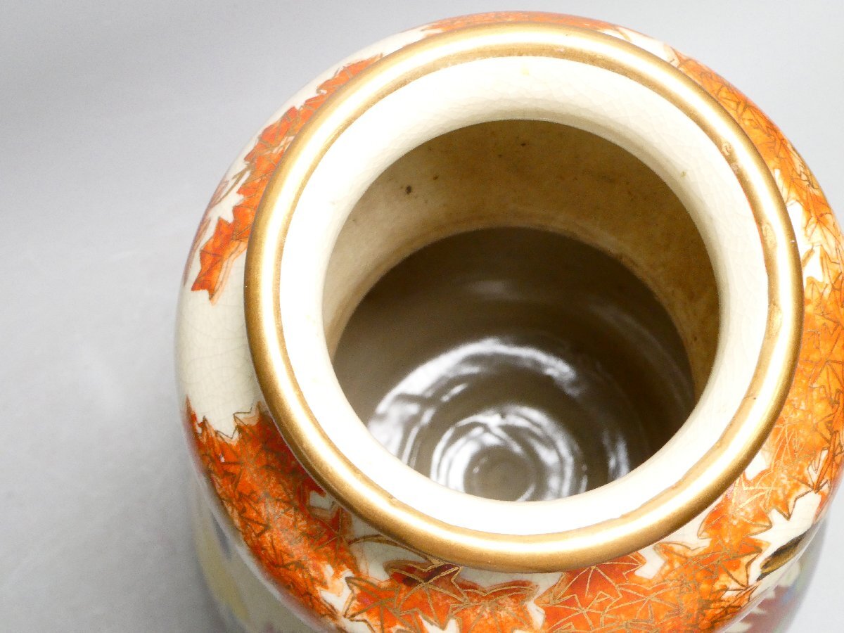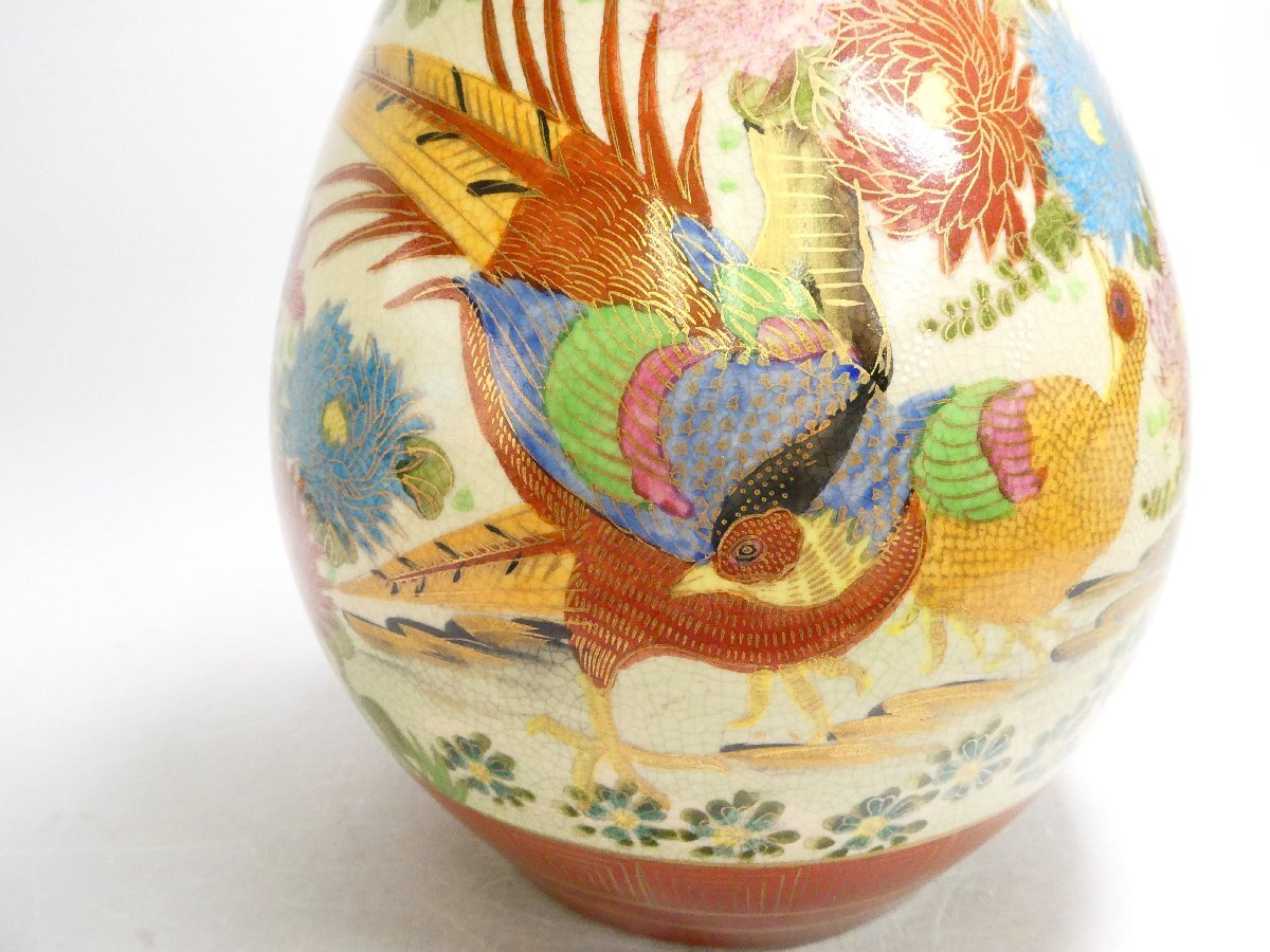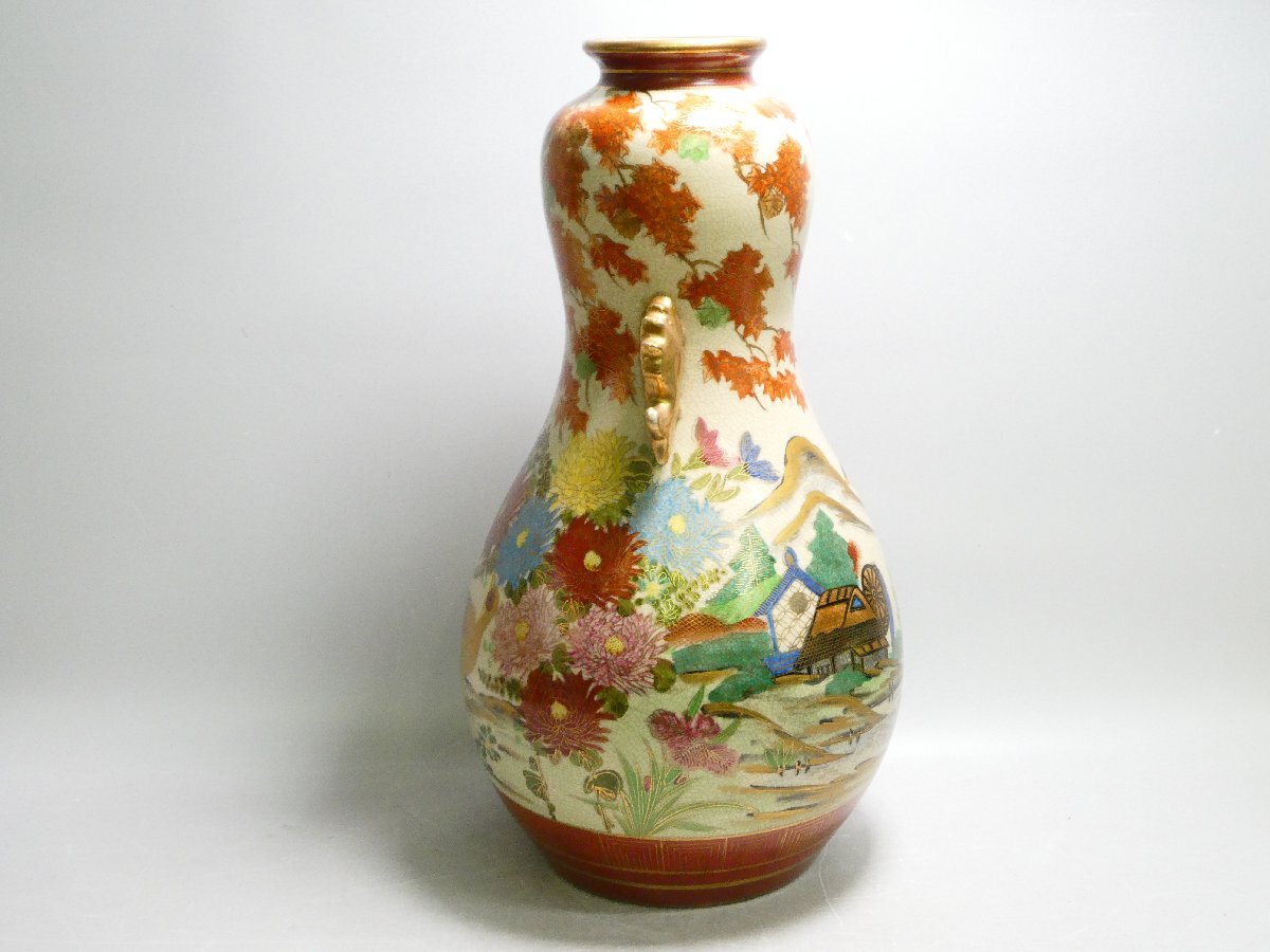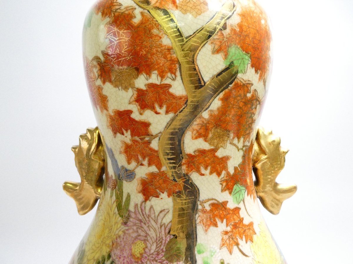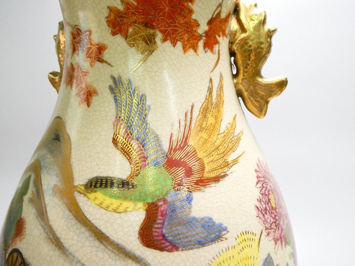 110426 薩摩焼 金彩耳付花鳥図 大型 花瓶 45cm