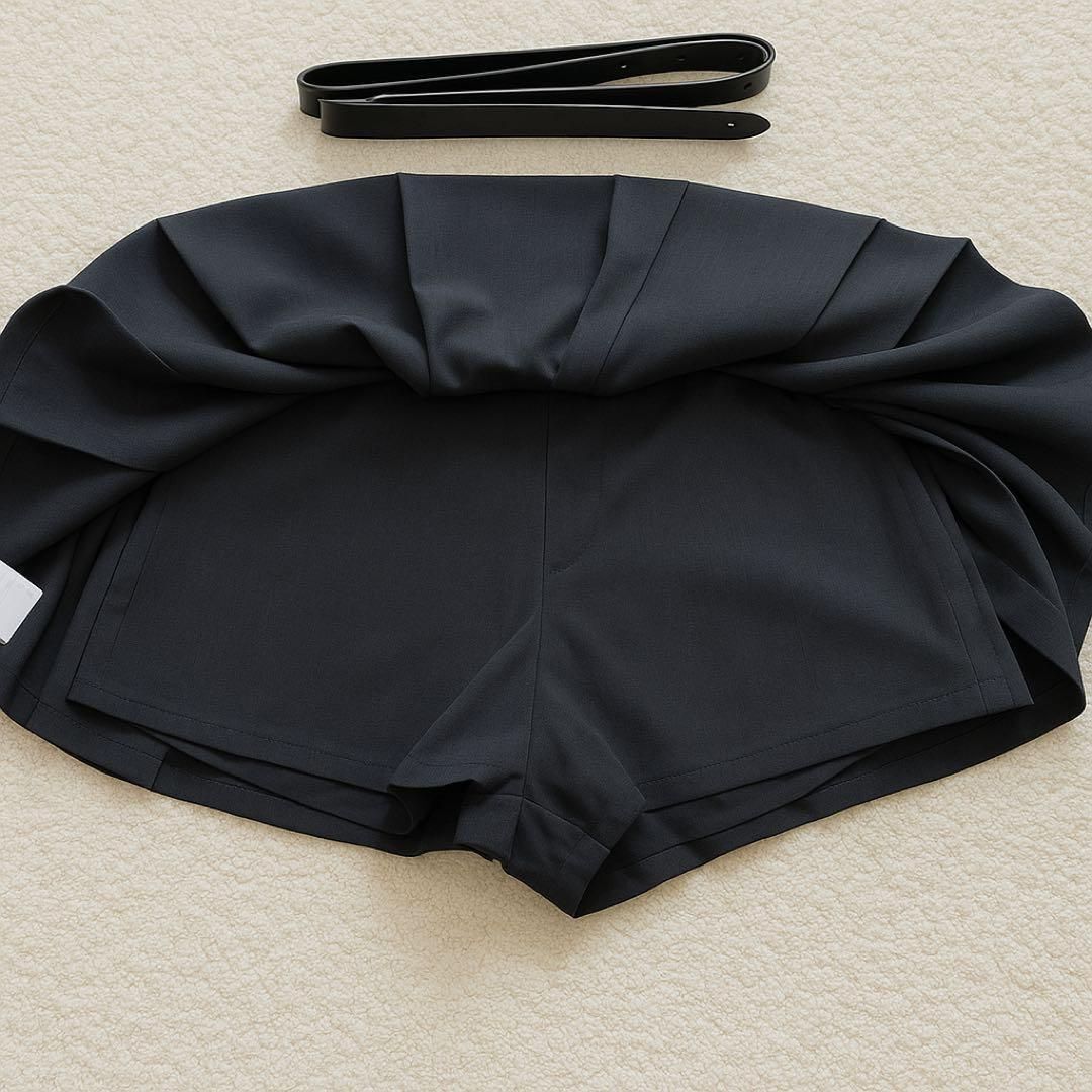 【最終値下げ】M 黒 プリーツスカート ミニスカート ベルト付 レディースインナーパンツ付