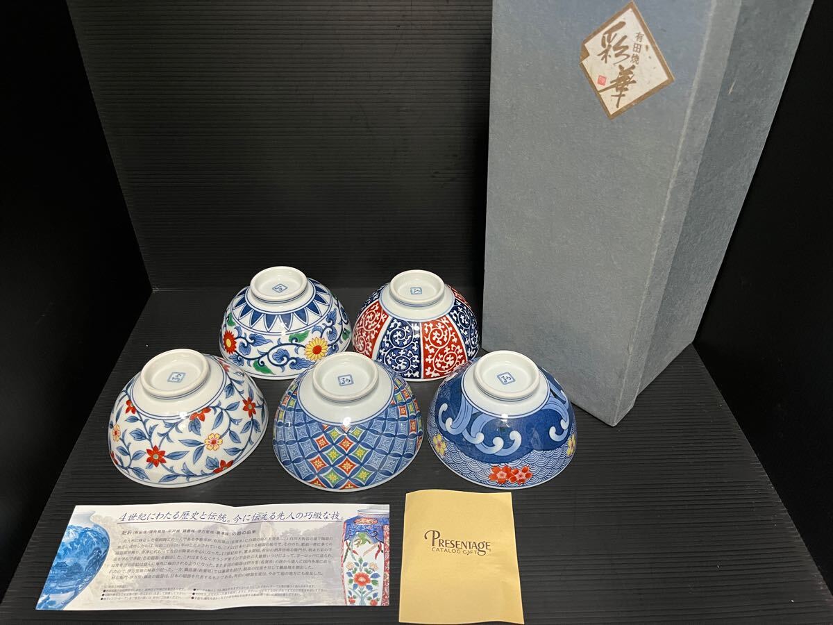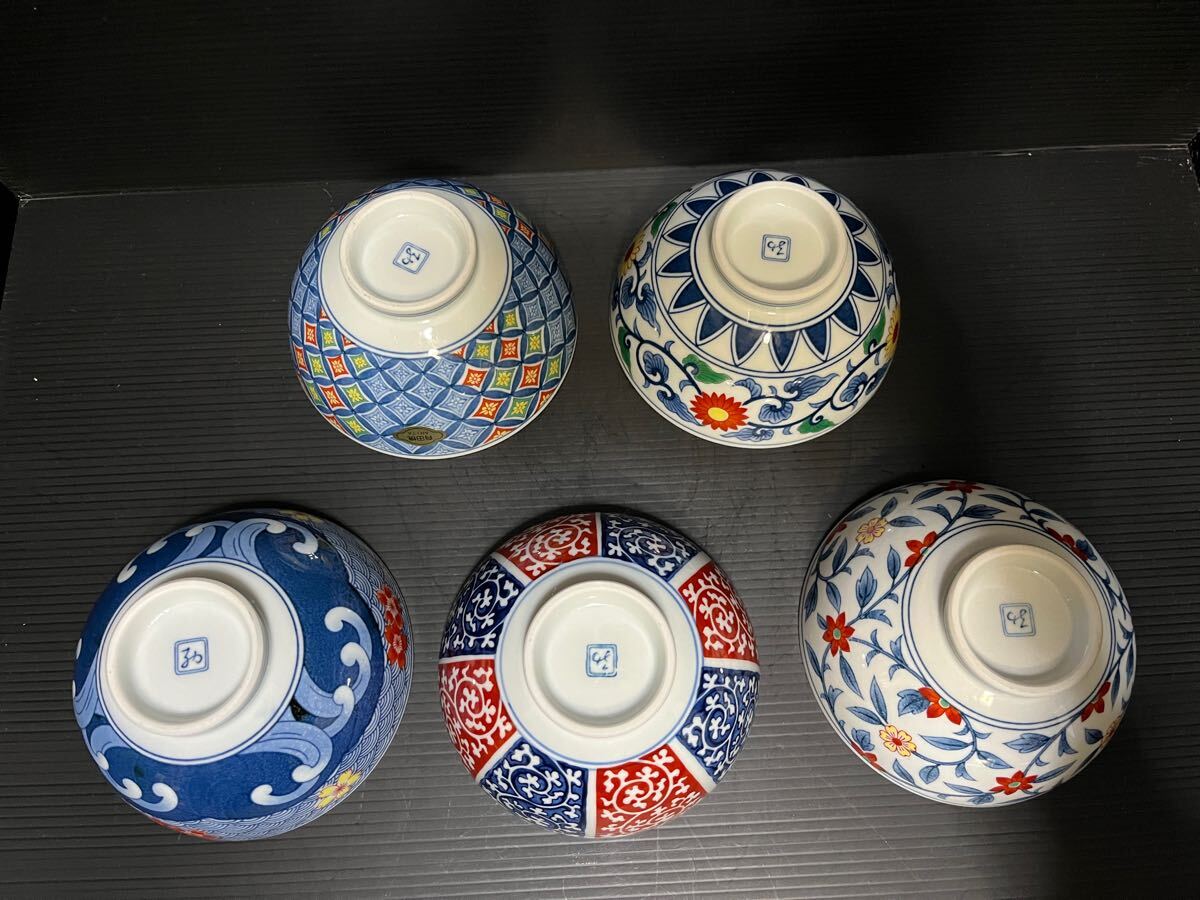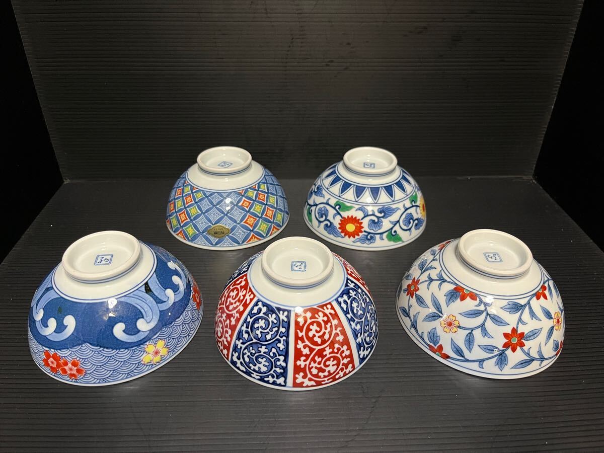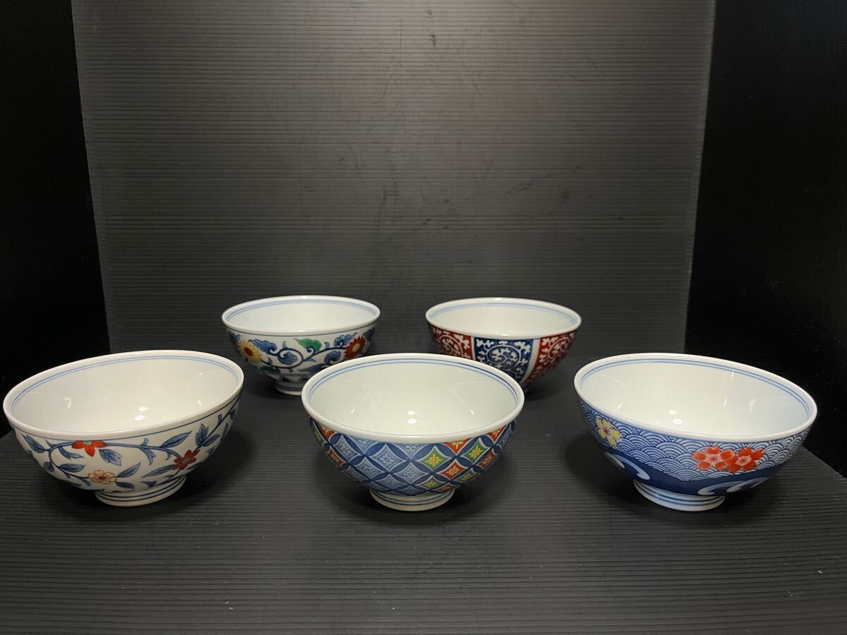 未使用 有田焼 彩華  ご飯茶碗5点セット 波佐見焼 和食器 茶碗 ご飯茶碗 色鍋島絵変り