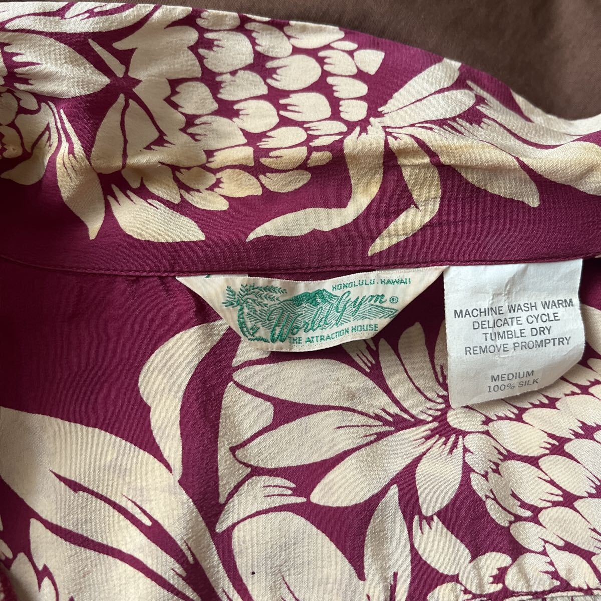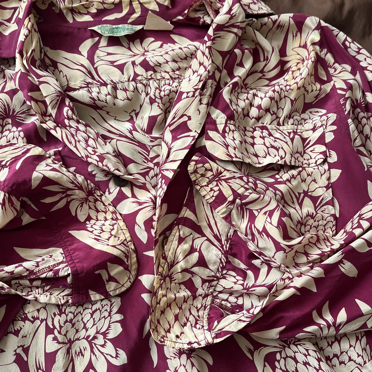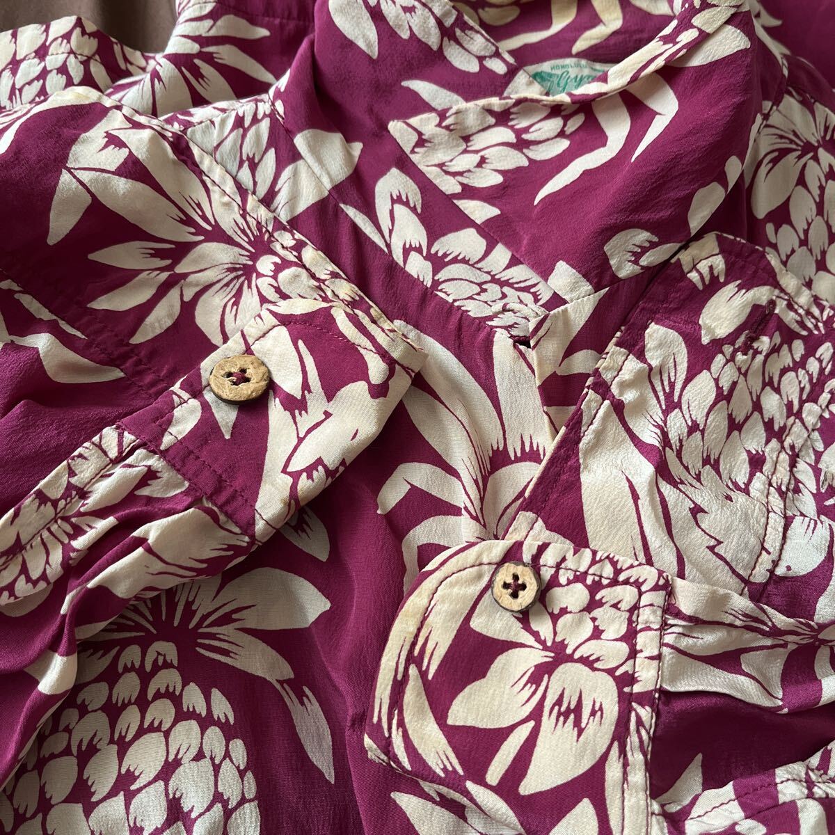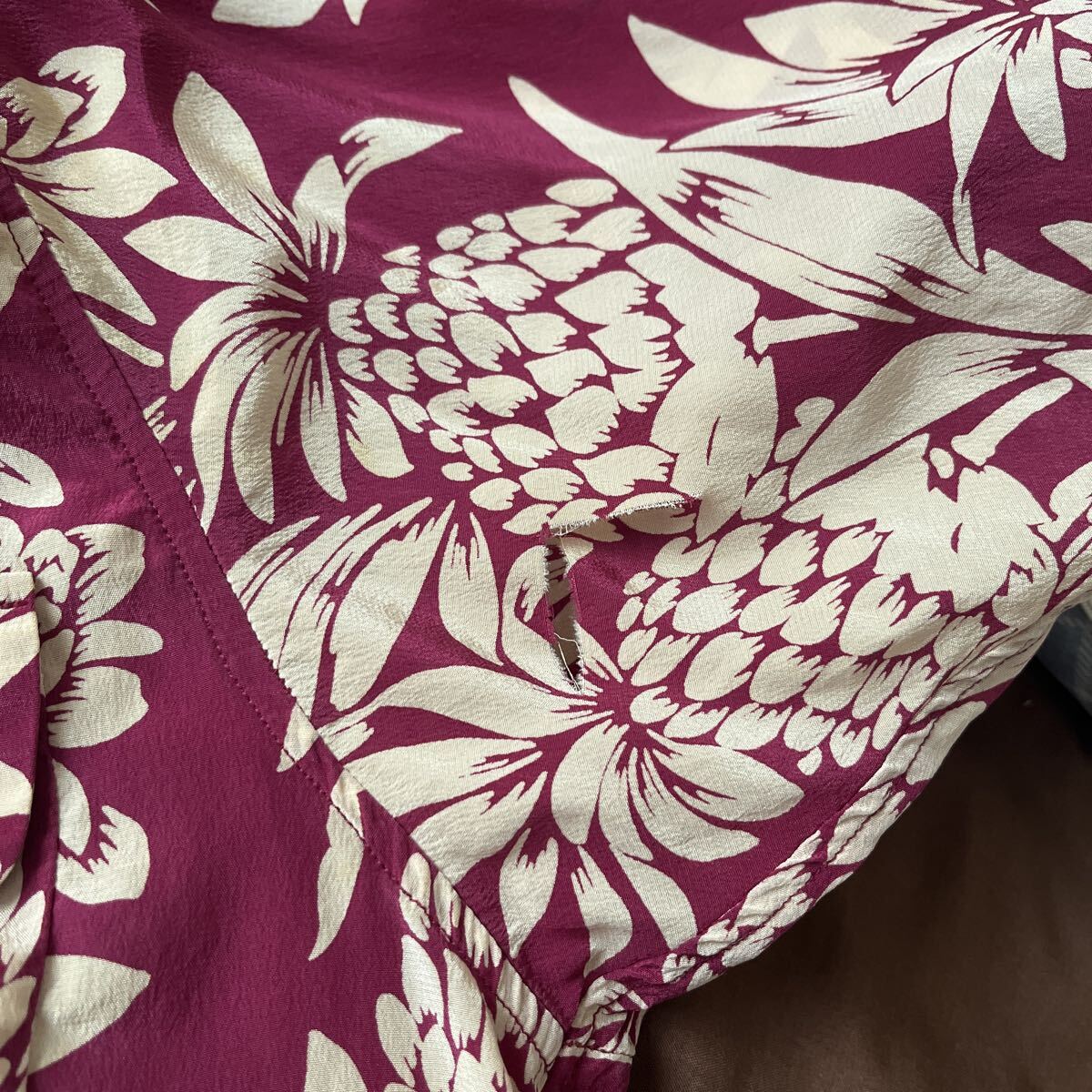 シルク素材のアロハシャツです。状態は悪いです。入札される方はご理解の上、落札ください。NCNRです。全体的に日焼けやシミがあります。その他見落としがあるかもしれませんがご了承下さい。