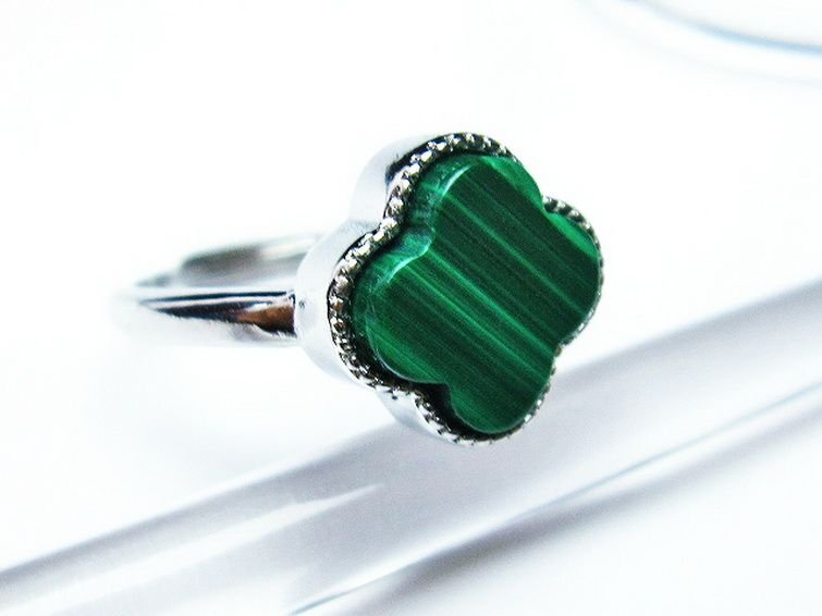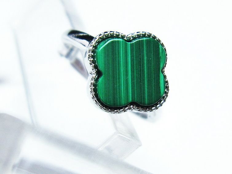 | ■商品名: マラカイト指輪 ■商品ID: T290-1320 ■商品重量:約 3.1g ■商品サイズ:サイズ:15号 【マラカイト(孔雀石)】 孔雀の羽のような鮮やかな緑色と独自の縞模様を持つ天然石で、マラカイトは鮮やかかつ縞模様がくっきりと見えるものほど価値が高いとされています。 産地としてはロシアのウラル山脈にあるニジニ・タギリスクの銅鉱山が最も有名で、かつては日本でも秋田県にある荒川鉱山などで良質なマラカイトが産出されていました。 マラカイトの歴史は古く、古代エジプトでは紀元前3000年頃から顔料や化粧品の材料として用いられていたといわれています。 かの有名なクレオパトラも魔除けにマラカイトの粉末を油で溶いたものをアイシャドウとして使っていたという記録も残っています。 マラカイトは強い邪気払いのエネルギーを持ち、災いを事前に察知する能力を高めるとされているのでビジネス面でのお守りとして心強いサポートが得られるでしょう。 また精神と肉体の両方にヒーリング効果をもたらしてくれますので、ストレスで精神的に疲れてしまったり、しっかりとした休息が取れずに体力的に辛い時に身に着けることをおすすめします。 ⇒ マラカイトをもっと詳しく ◆ワンポイント情報 マラカイトは硬度が3.6~4と低いため衝撃を与えると割れてしまうので取り扱いには十分注意しましょう。 また、水分や塩分にも弱いので身に着けた後は柔らかい布で拭きとり、こまめにケアをするようにしてください。 |