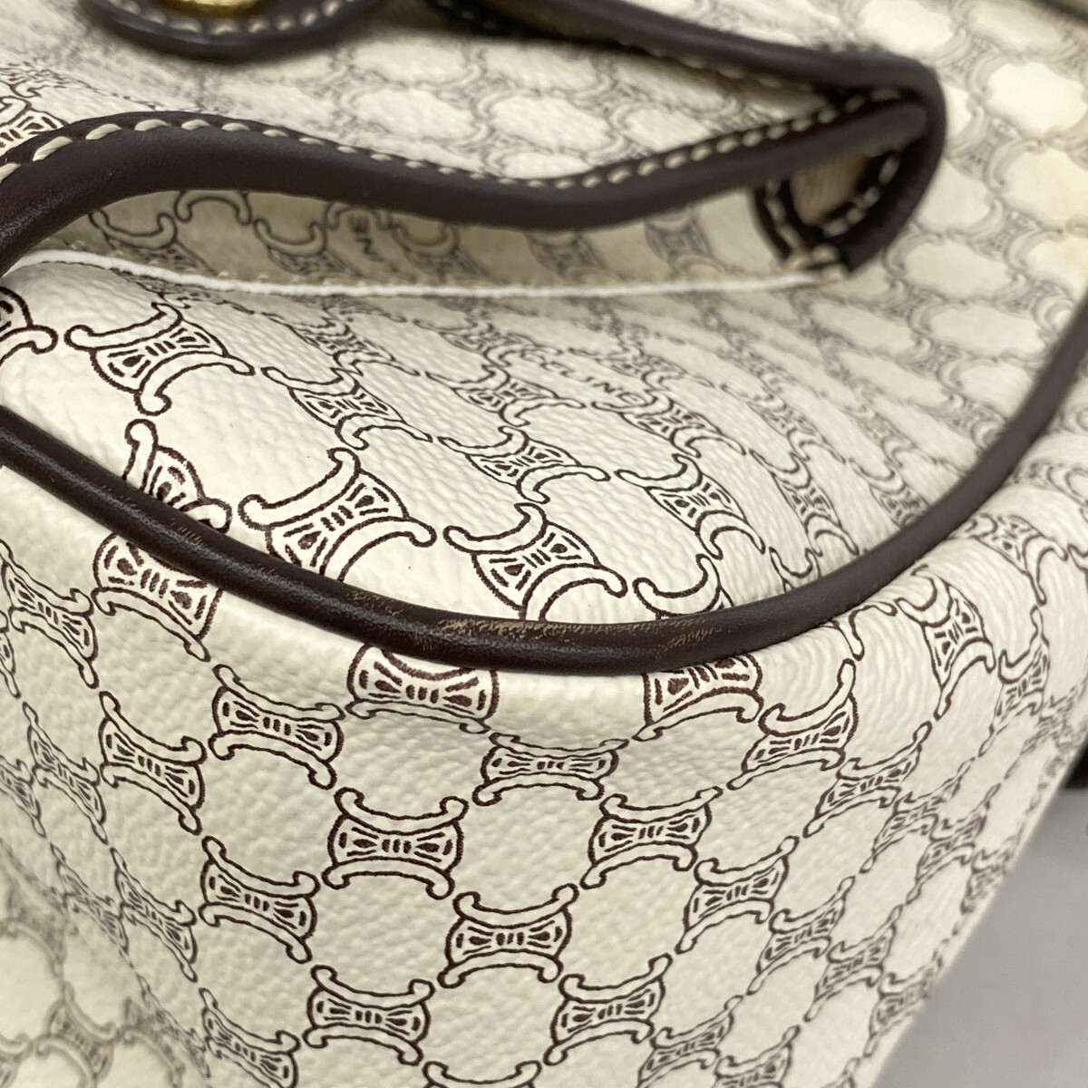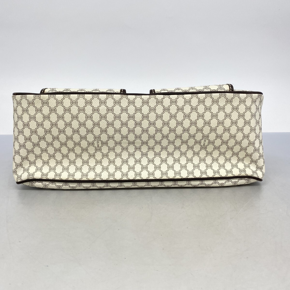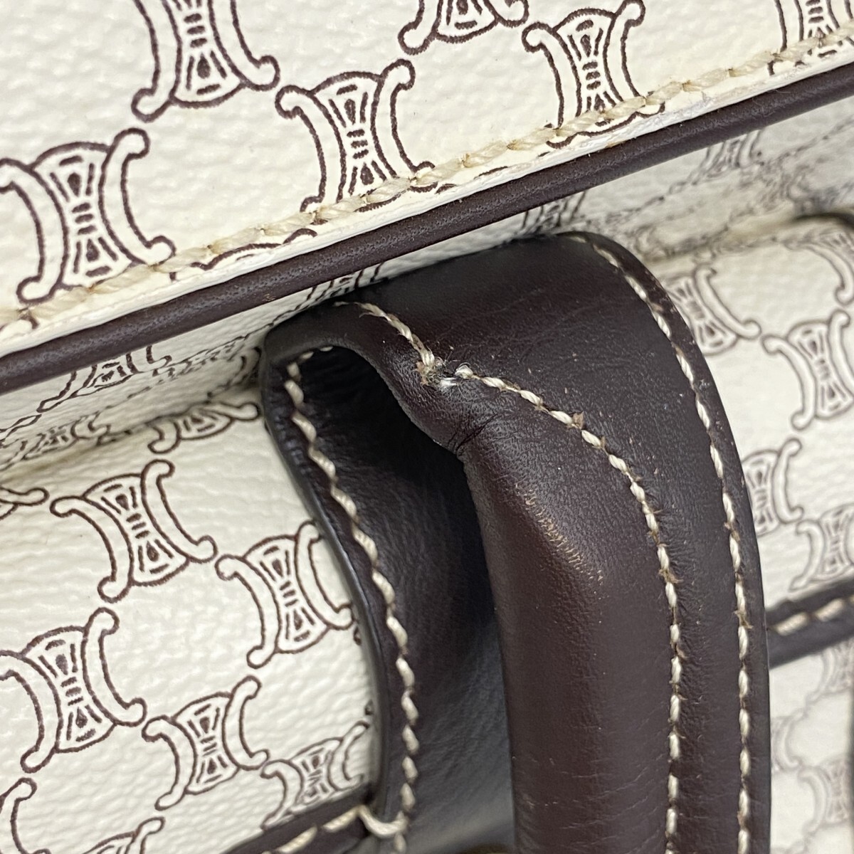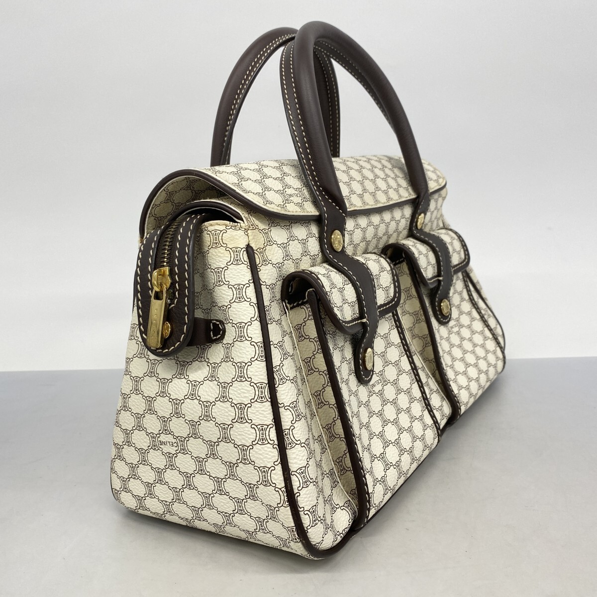 ★SALE【5mc3785】セリーヌ ハンドバッグ マカダム PVC ホワイト ブラウン ゴールド金具【中古】レディース