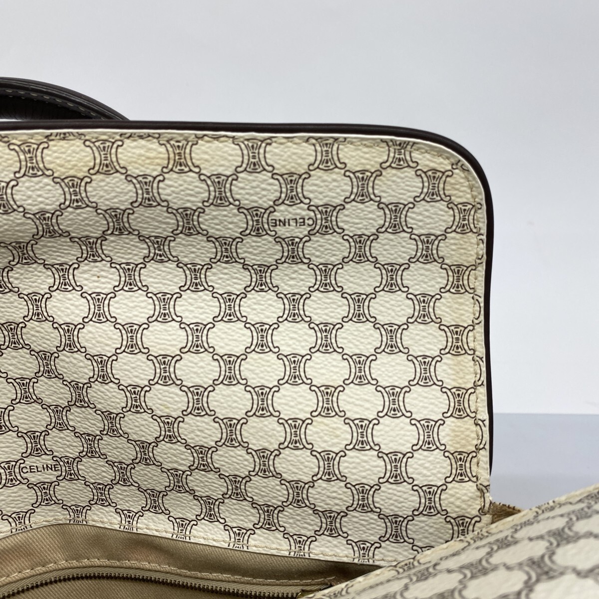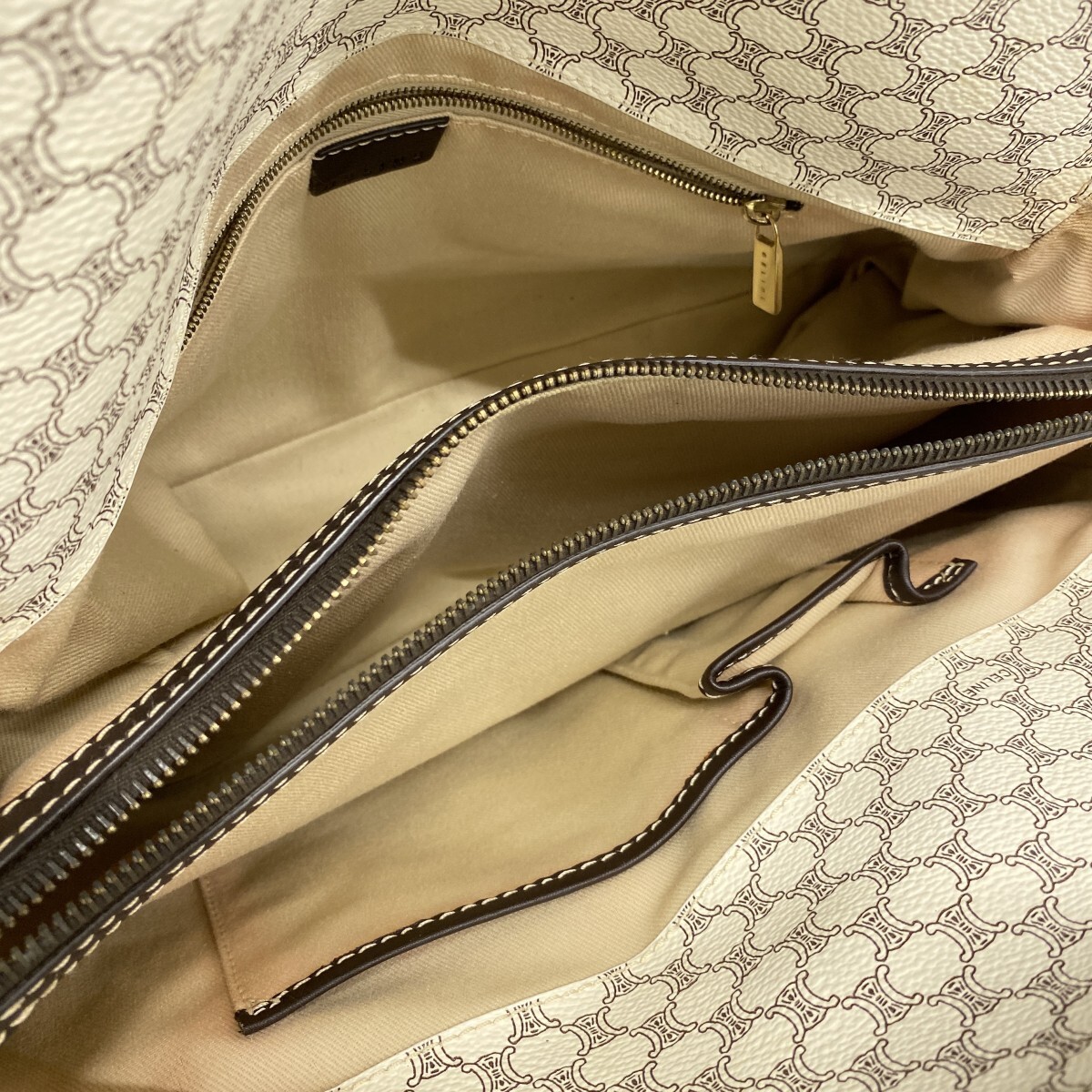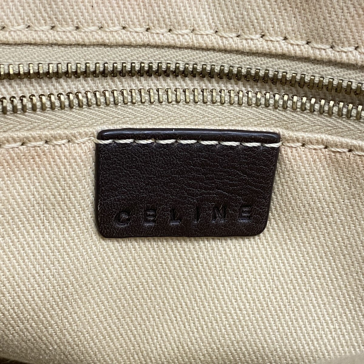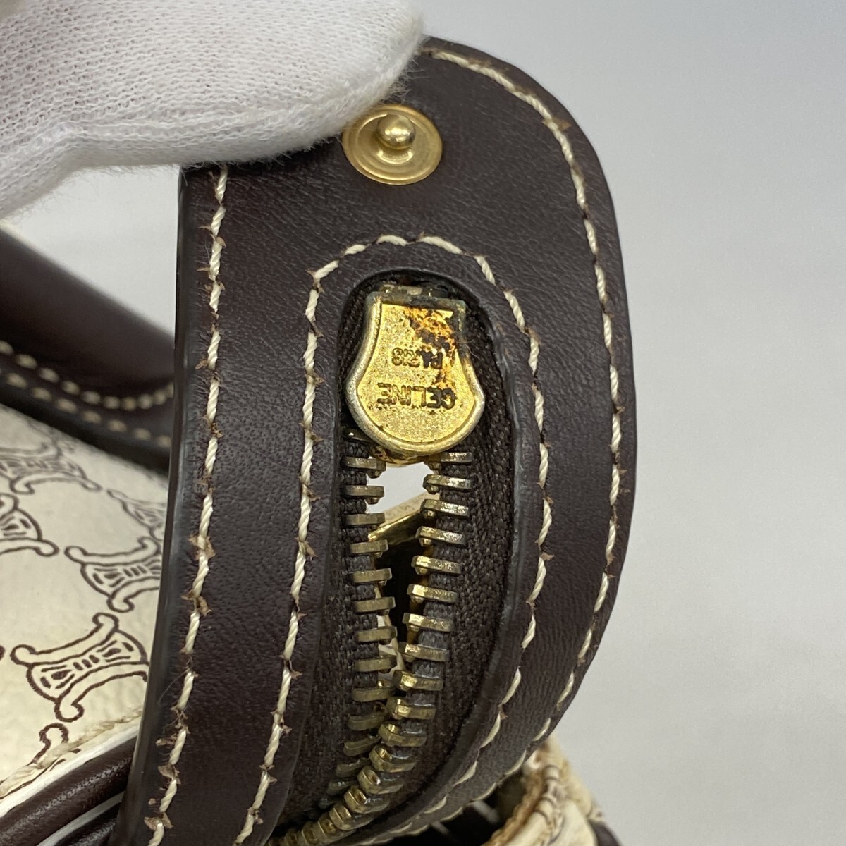 ★SALE【5mc3785】セリーヌ ハンドバッグ マカダム PVC ホワイト ブラウン ゴールド金具【中古】レディース