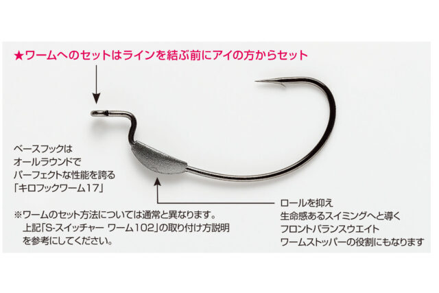 | 新品になります。 生命感に満ちたリアルスイミングを演出。フロントバランスウェイト ややロールを抑えるスイミングバランスと前のめりなフォール姿勢が、ベイトフィッシュに近いリアルスイミングアクションへと導く、フロントバランス仕様のチューンドフックです。高比重ストレートワームやS字系ソフトベイトまで、様々なワームに生命感を吹き込み、ストレートリトリーブでのスイミング&フォール、ズル引き等でニュートラルフィッシュに口を使わせます。更に、フロント側に位置するウェイトがワームのズレを防ぎ、ワームストッパーとしての役割も果たすため、高比重及び自重のあるワームへの使用にもズレを気にすることなく、セカンドバイトも拾える扱いやすい設定となっています。 | ||