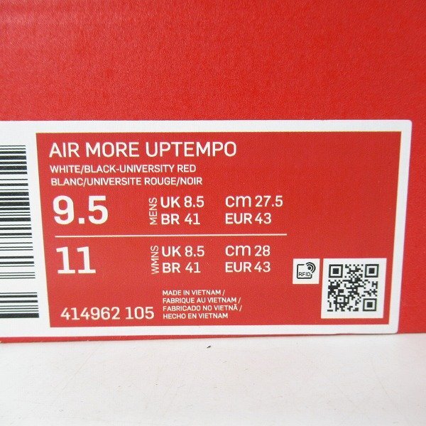 | NIKE/ナイキ AIR MORE UPTEMPO/エアモアアップテンポ ホワイト/ブラック 414962-105/27.5 /080 | |||||||||||||||||||||||||