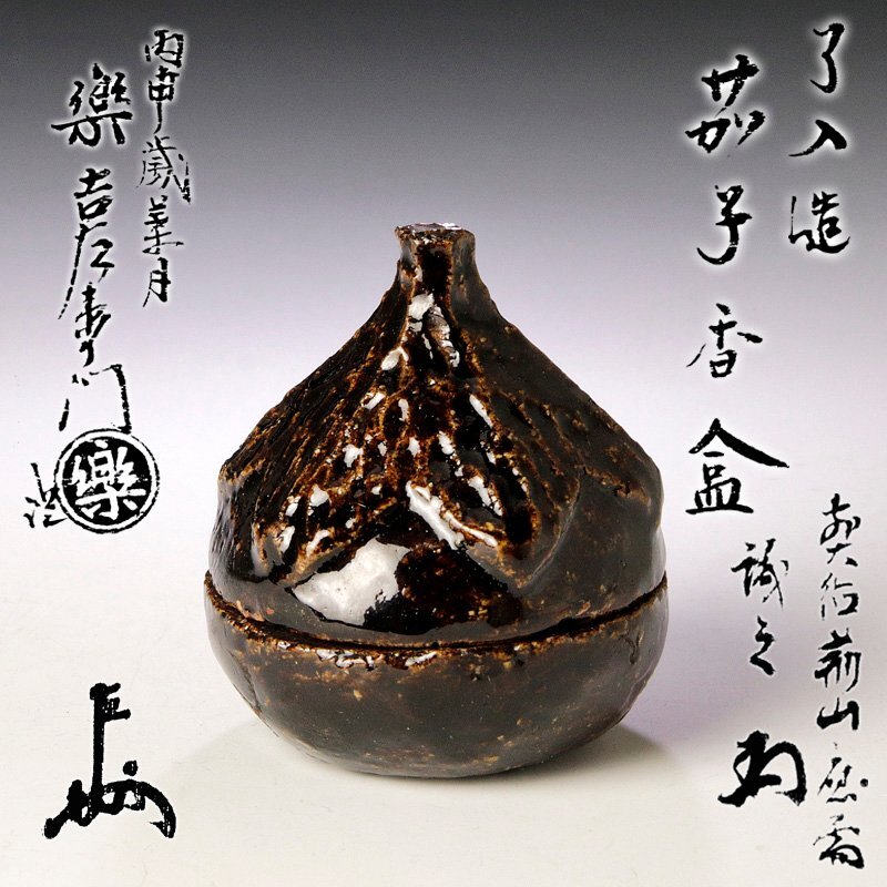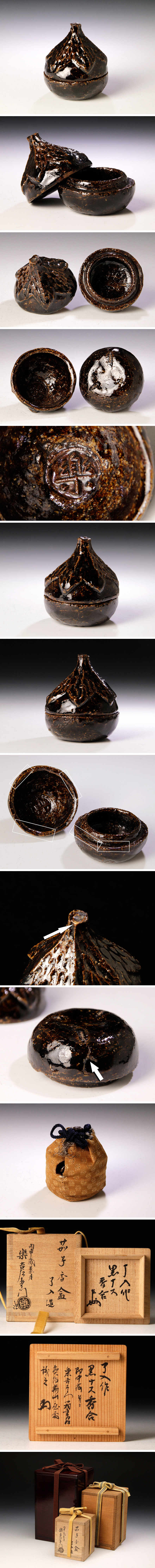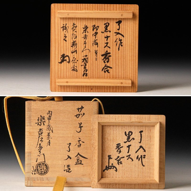 | 【古美味】九代楽吉左衛門(了入)造『即中斎書付』茄子香合 十四代(覚入)/三重野与雲(荊山宗璞)識 茶道具 保証品 |