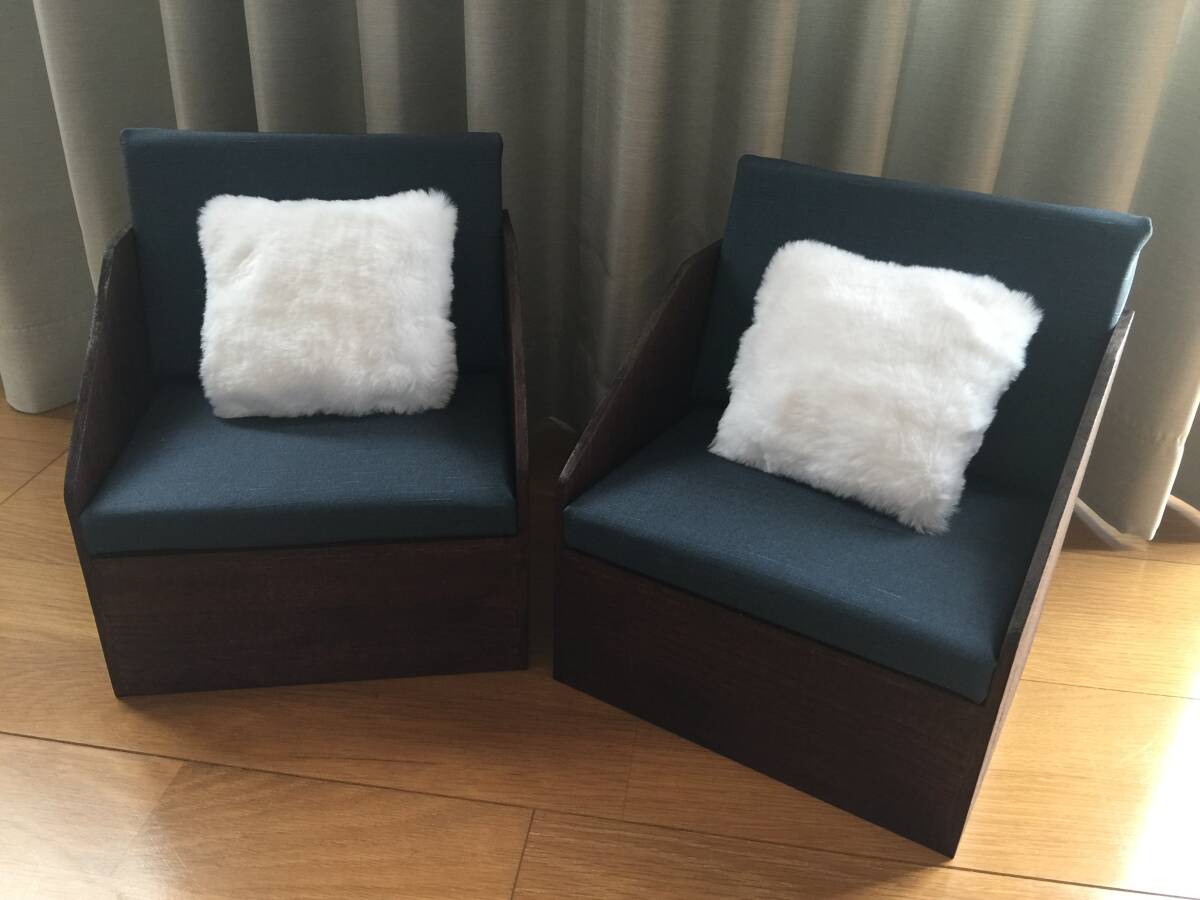 【DOLLソファー】ドール用ベンチ/ソファー ブルー 木製 椅子 SD/BJD/DD/AZONE/ANGEL PHILIA/オビツ 70cmドールなど