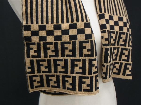 1円 ■極美品■ FENDI フェンディ ズッカ柄 ウール マフラー ストール ショール 防寒具 レディース メンズ ブラウン系 FQ1744