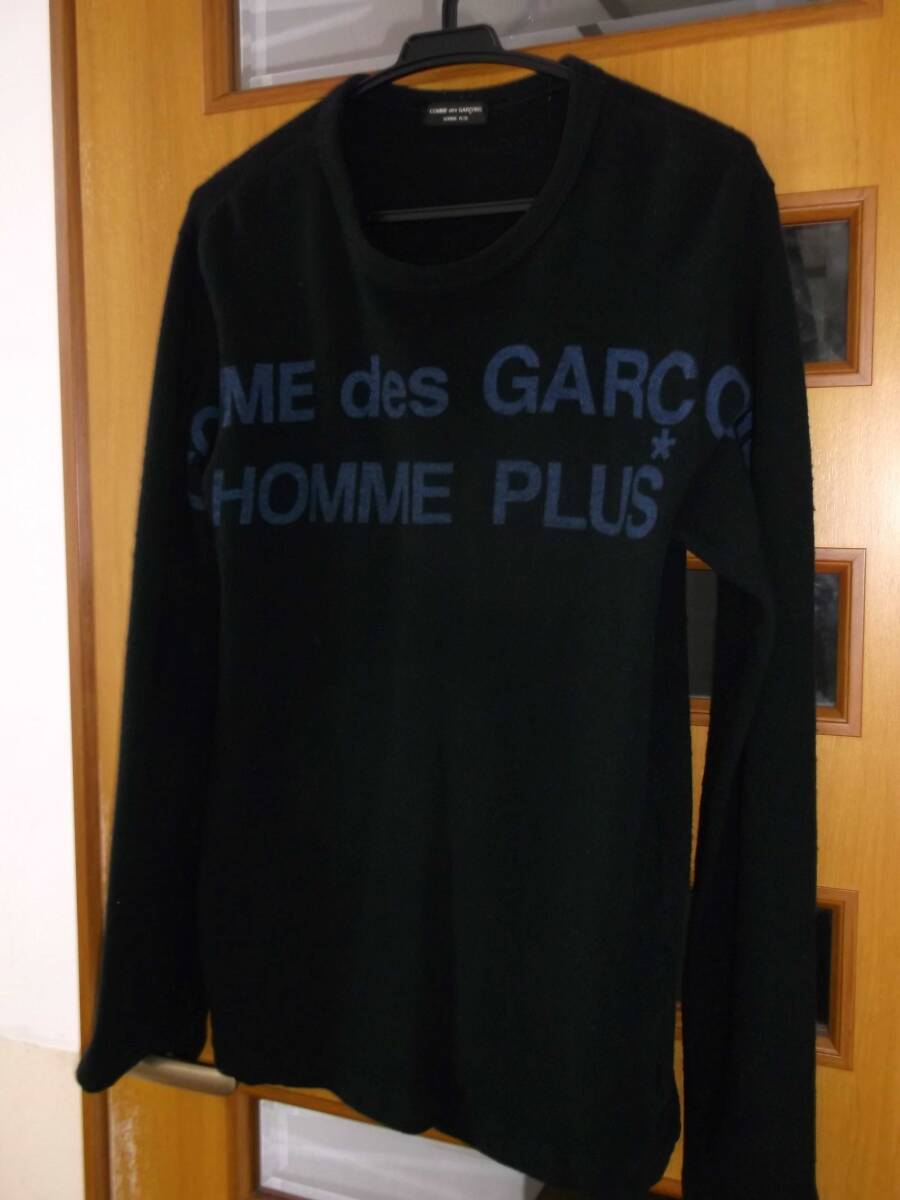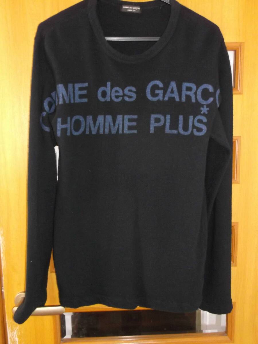 名作!◆コムデギャルソンオムプリュス◆ロゴ入り◆縮絨◆セーター◆着払い◆サイズフリー◆ブラック◆希少!