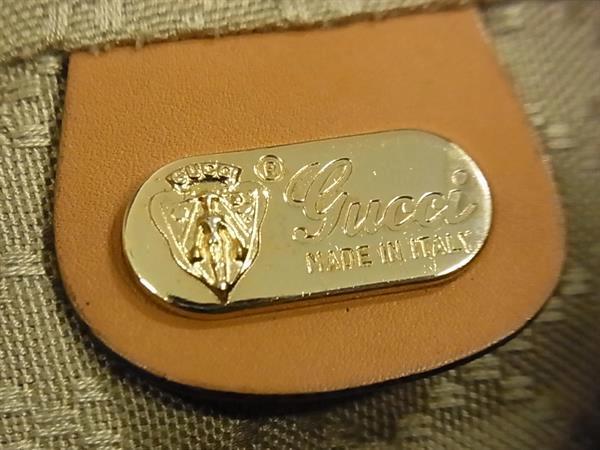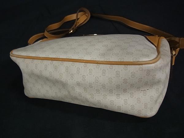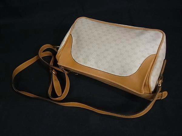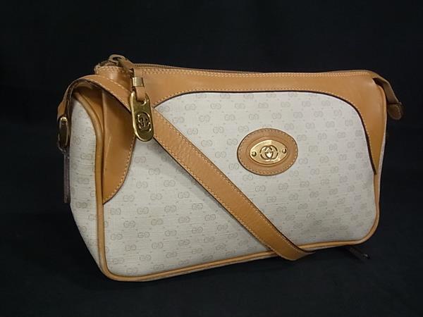 1円 GUCCI オールドグッチ 001 115 0443 ヴィンテージ マイクロGG PVC×レザー ショルダーバッグ 斜め掛け ベージュ系×ブラウン系 FS5531