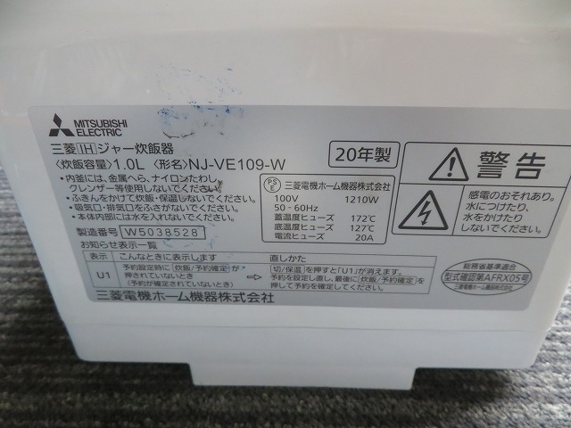 C☆三菱  IHジャー炊飯器 NJ-VE109-W 20年製 炭炊釜 5.5合炊き 白 ◎昇温確認済