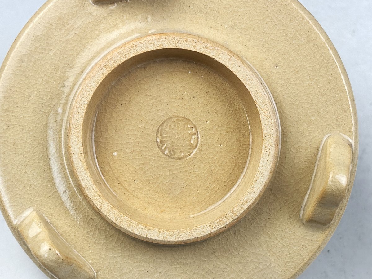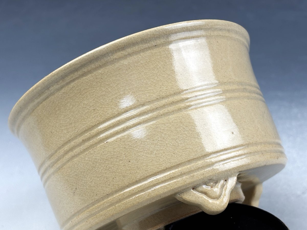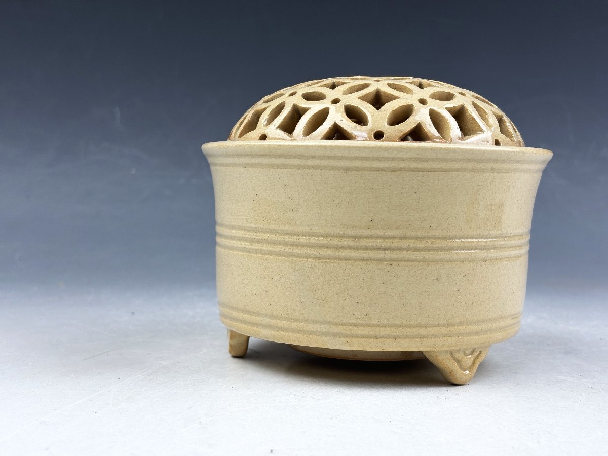 萩焼の名工 山口県指定無形文化財に認定 十三代坂田泥華(十四代天耳庵坂田泥珠)造の香炉です。優しい色合いの肌に七宝文の火屋が施された千鳥香炉形の味わい深い香炉です。
