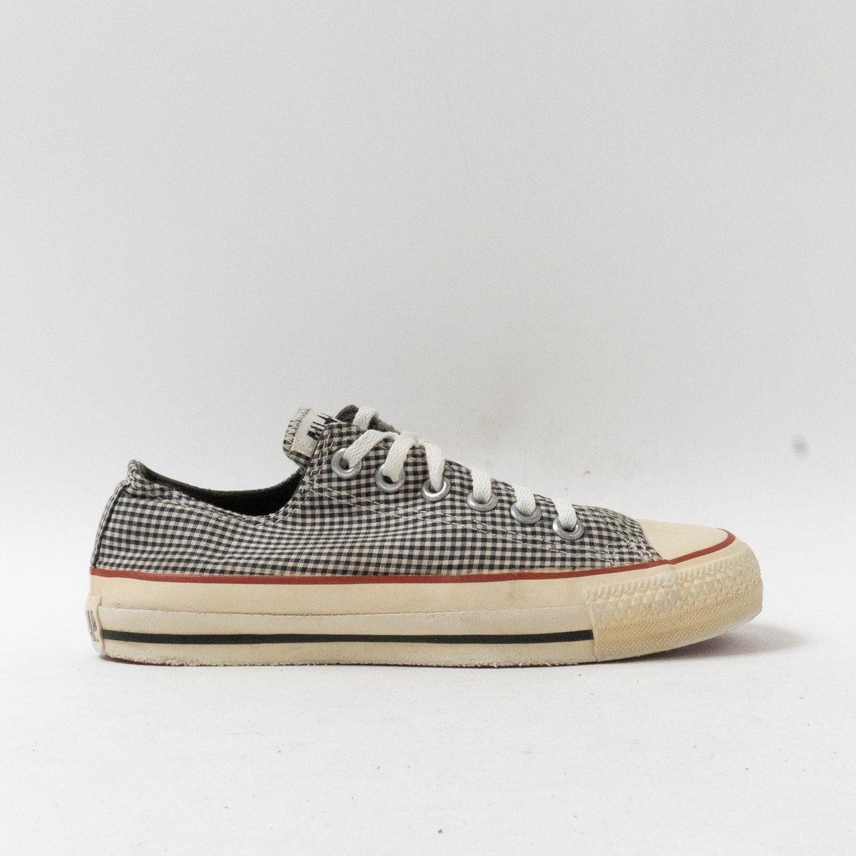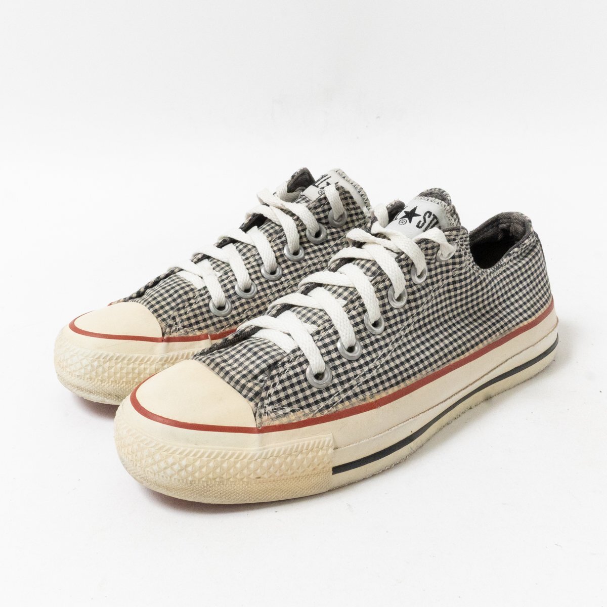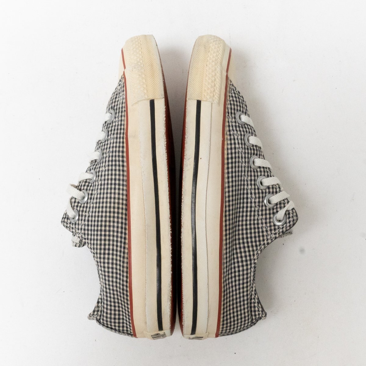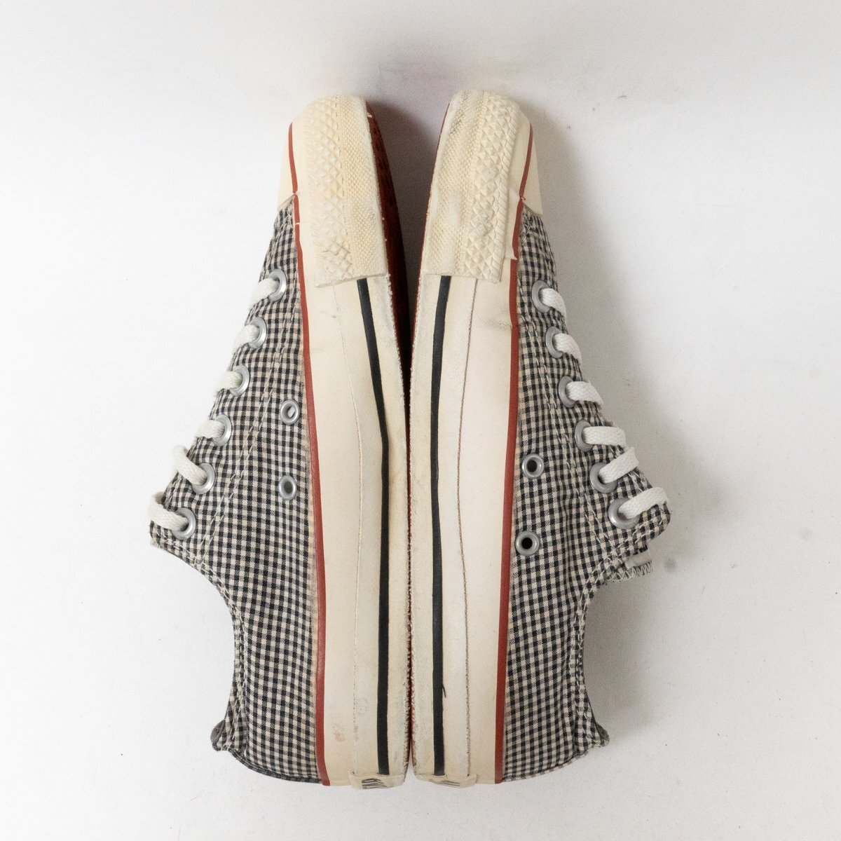 | 状態 | D キャンバス汚れ、紐汚れ、インナー・インソール汚れ、ソールサイド汚れ・ひび割れ、ソール汚れ・擦れ傷・擦り減り、ヒールパッチ擦り減り、全体的に汚れと使用感あります。 |