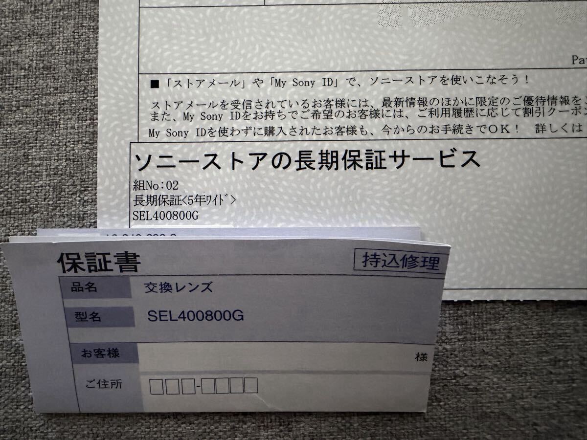 納品書もお付けしますので、ソニーストアの5年ワイド保証が付きます。