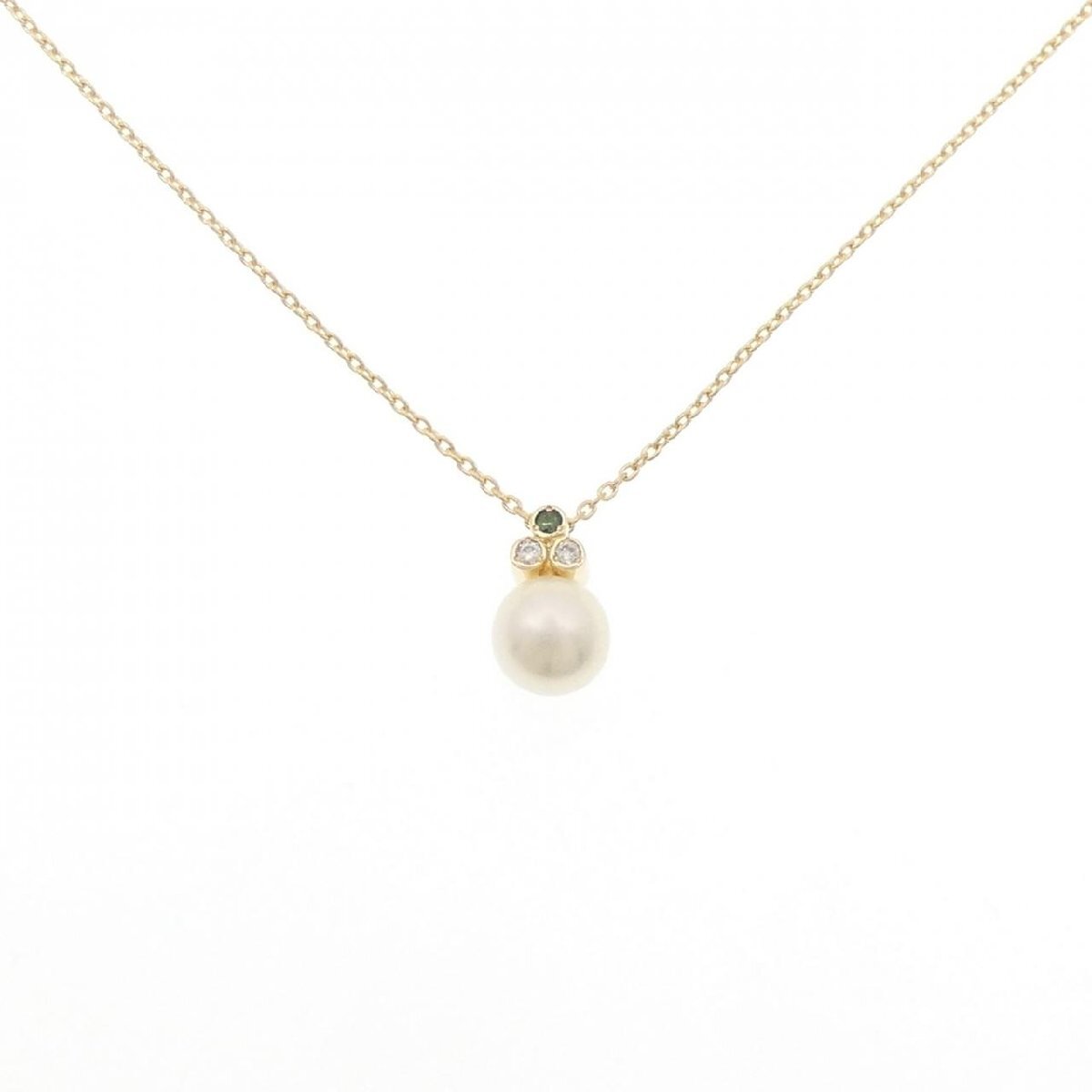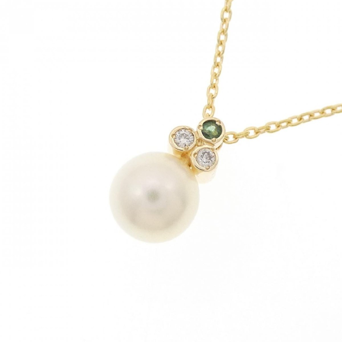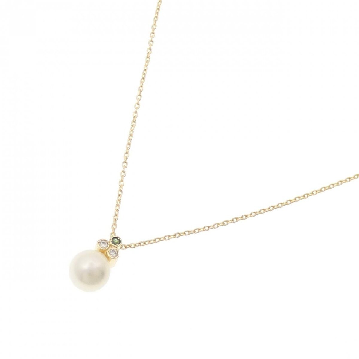 柔らかな艶を放つアコヤパールが印象的なK18YGネックレス。パールの上で輝く小さな宝石たちが、胸元に繊細なアクセントを添えてくれます。