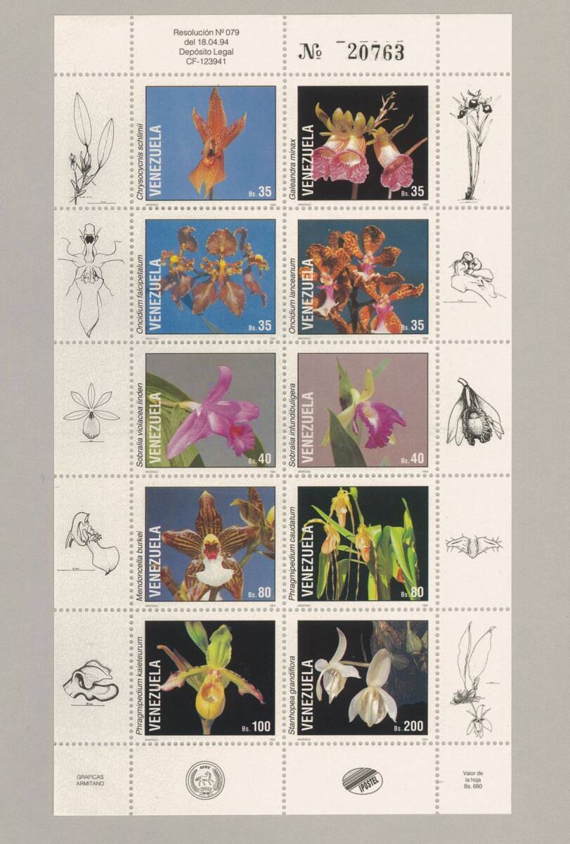 外国切手 ベネズエラ 蘭 花 オーキッド 10面シート 未使用