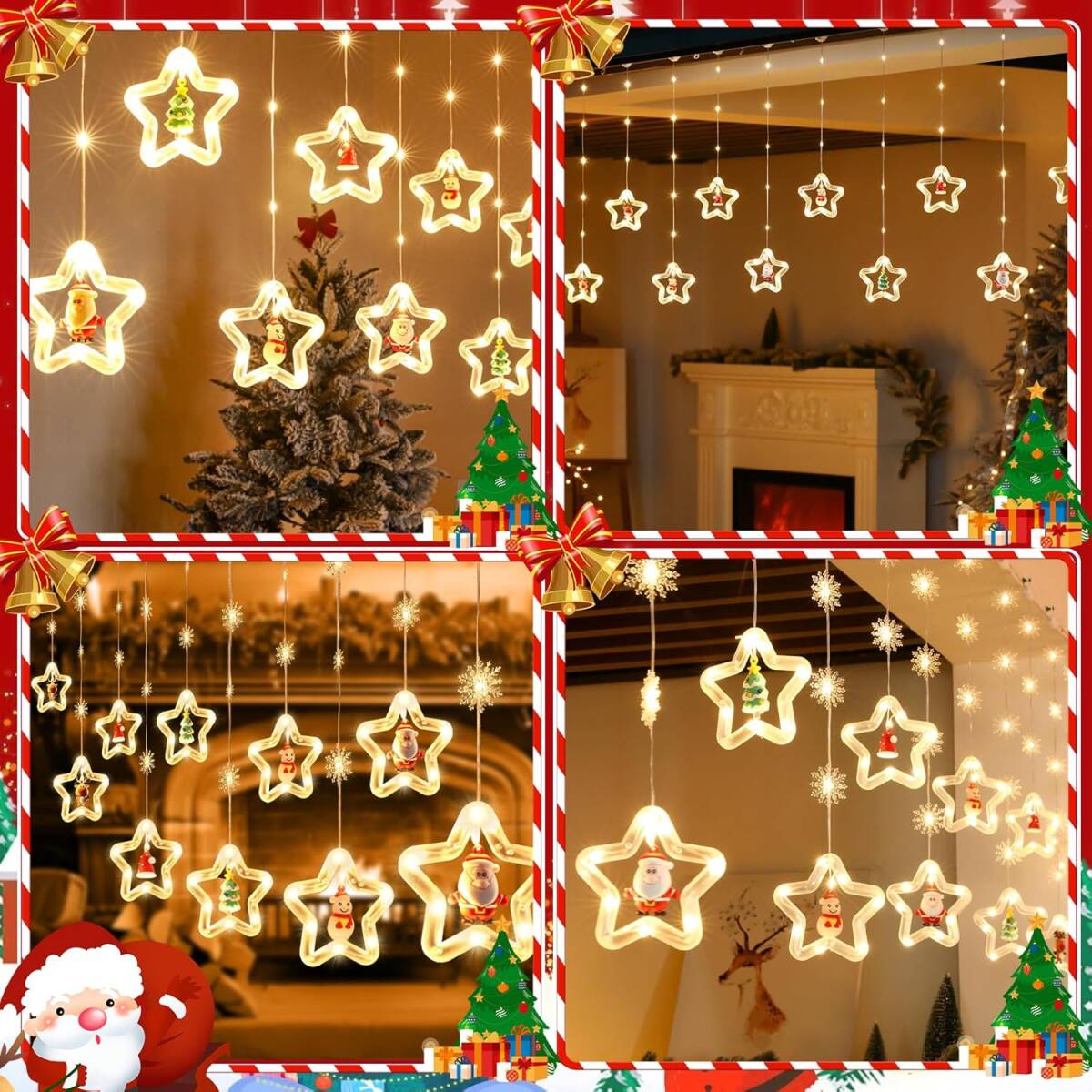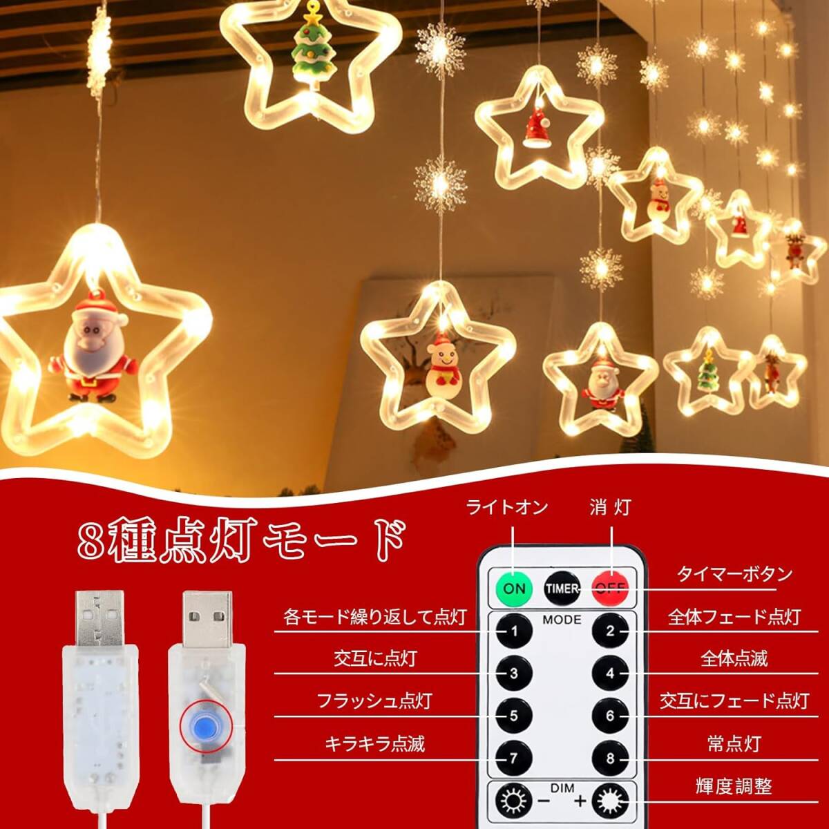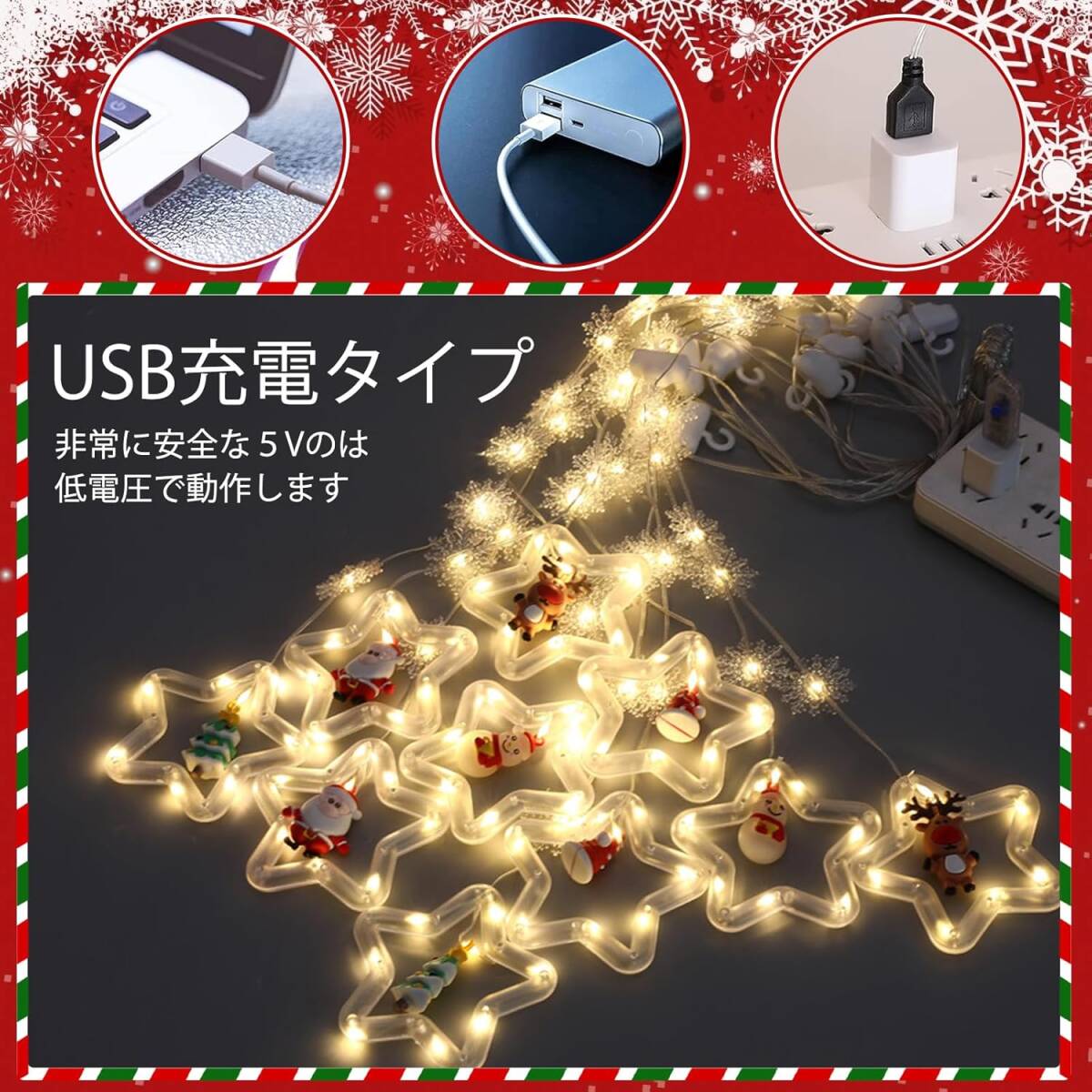 星型 クリスマスイルミネーションライト キラキラ 5.7m 110電球 USB充電式 クリスマスツリーライト リモコン付 8種類の照明